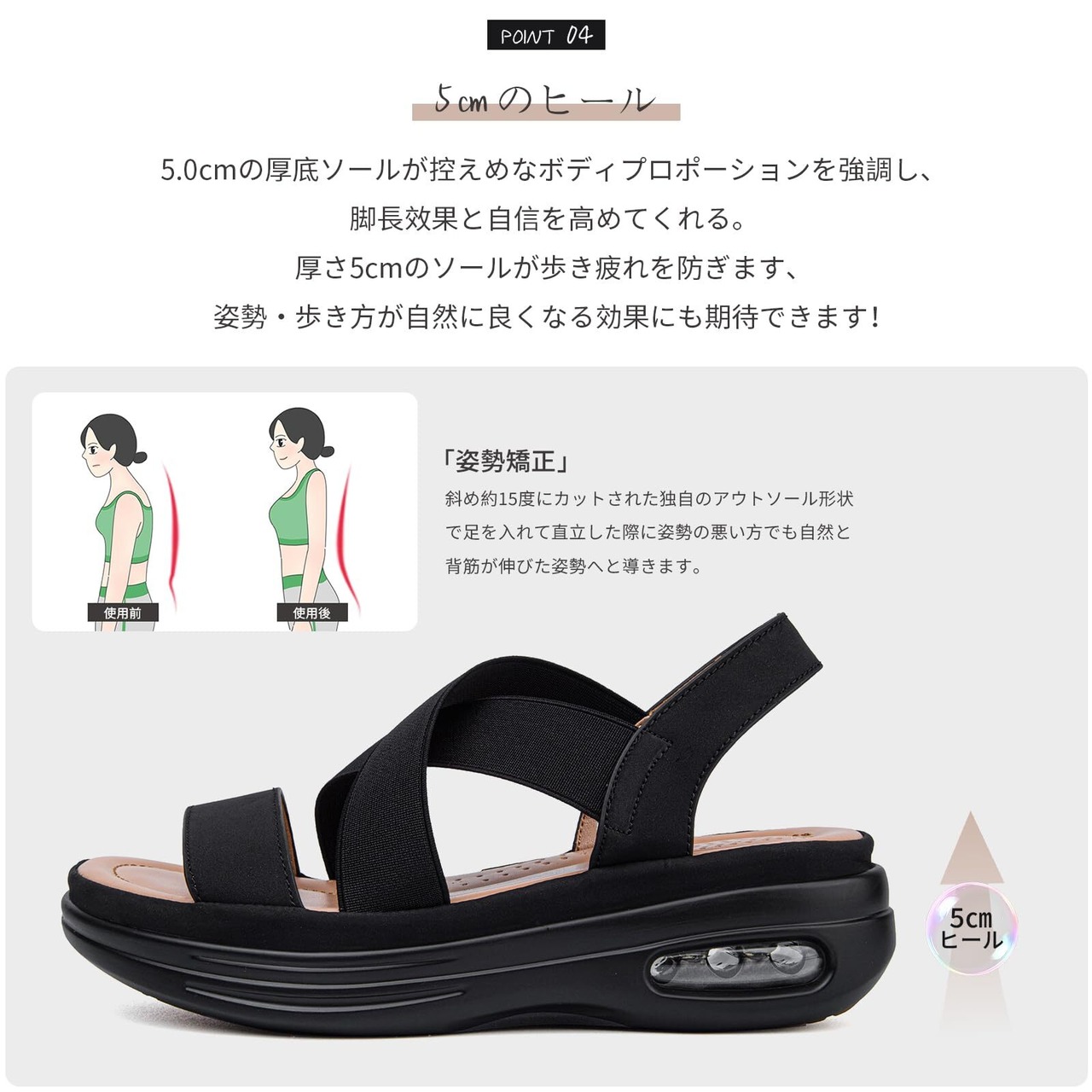 [Maxome] サンダル レディース 歩きやすい ゴムバンド 厚底 スポーツサンダル エアクッション クロスベルト 夏 疲れない 軽量 痛くない オフィスサンダル スリッポン ウォーキング ウェッジ 美脚 通勤 カジュアル おしゃれ