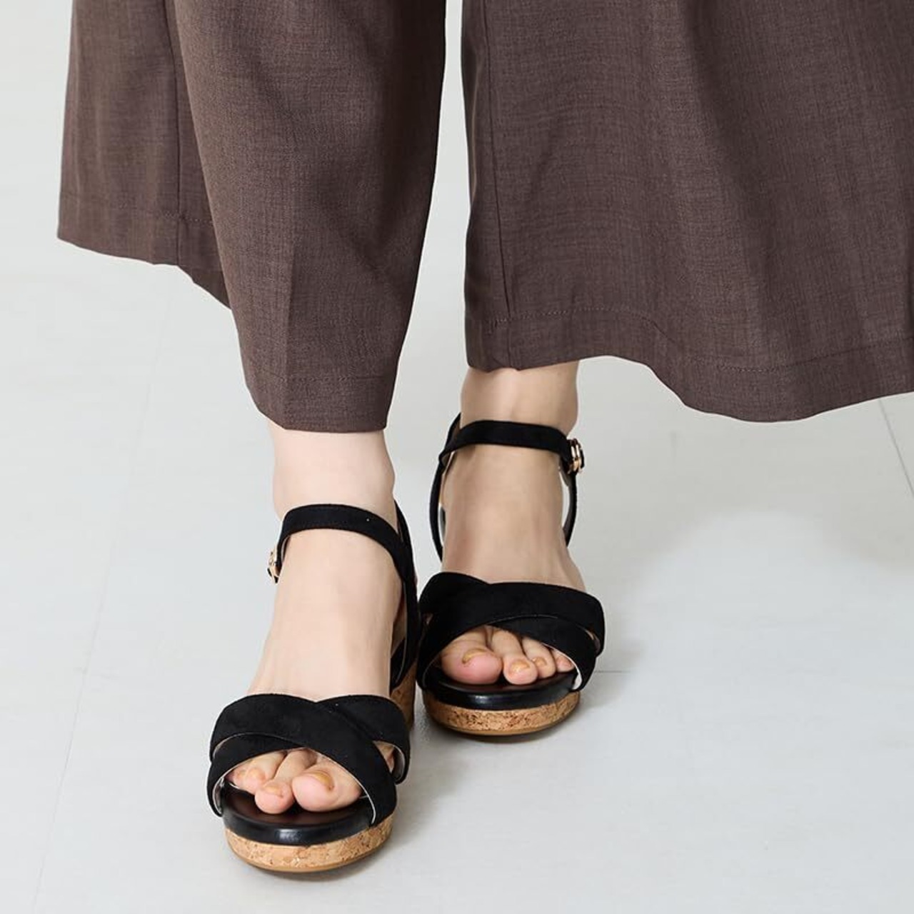 [オリエンタルトラフィック] サンダル レディース ラウンドトゥ ウェッジソール 大きいサイズ 小さいサイズ 歩きやすい ストラップ クッション性 クロスデザイン 疲れにくい