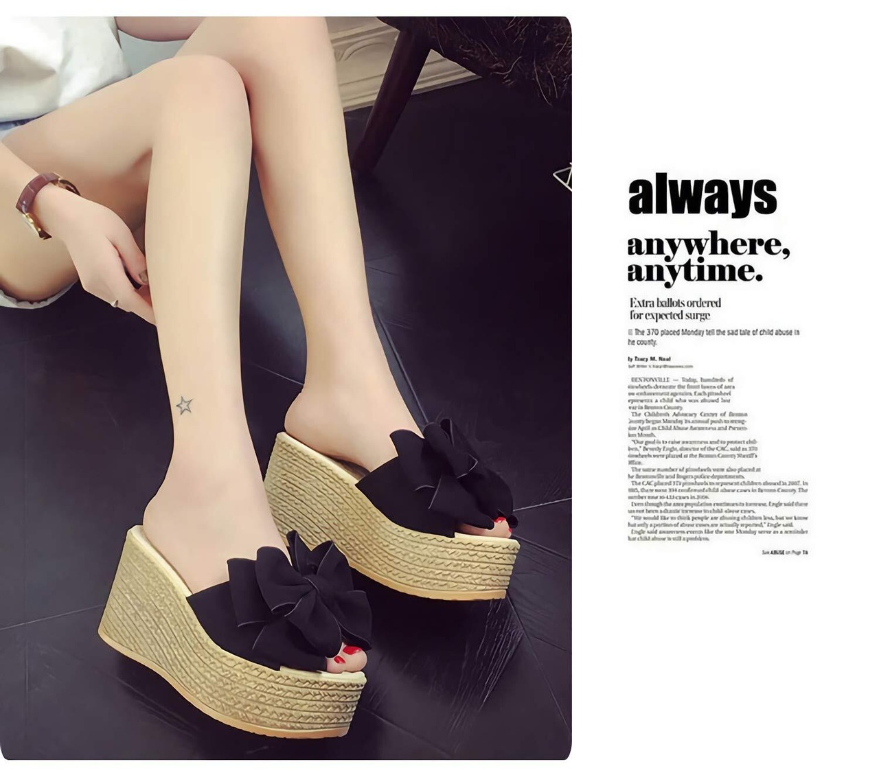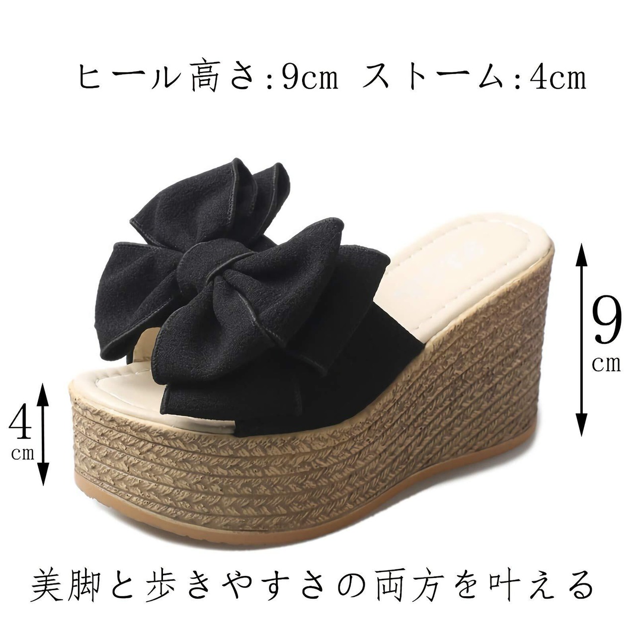 [RSWHYY] スリッパ サンダル レディーズ かわいい 厚底 ウェッジソール 蝶結び 夏 ハイヒール ビーチサンダル
