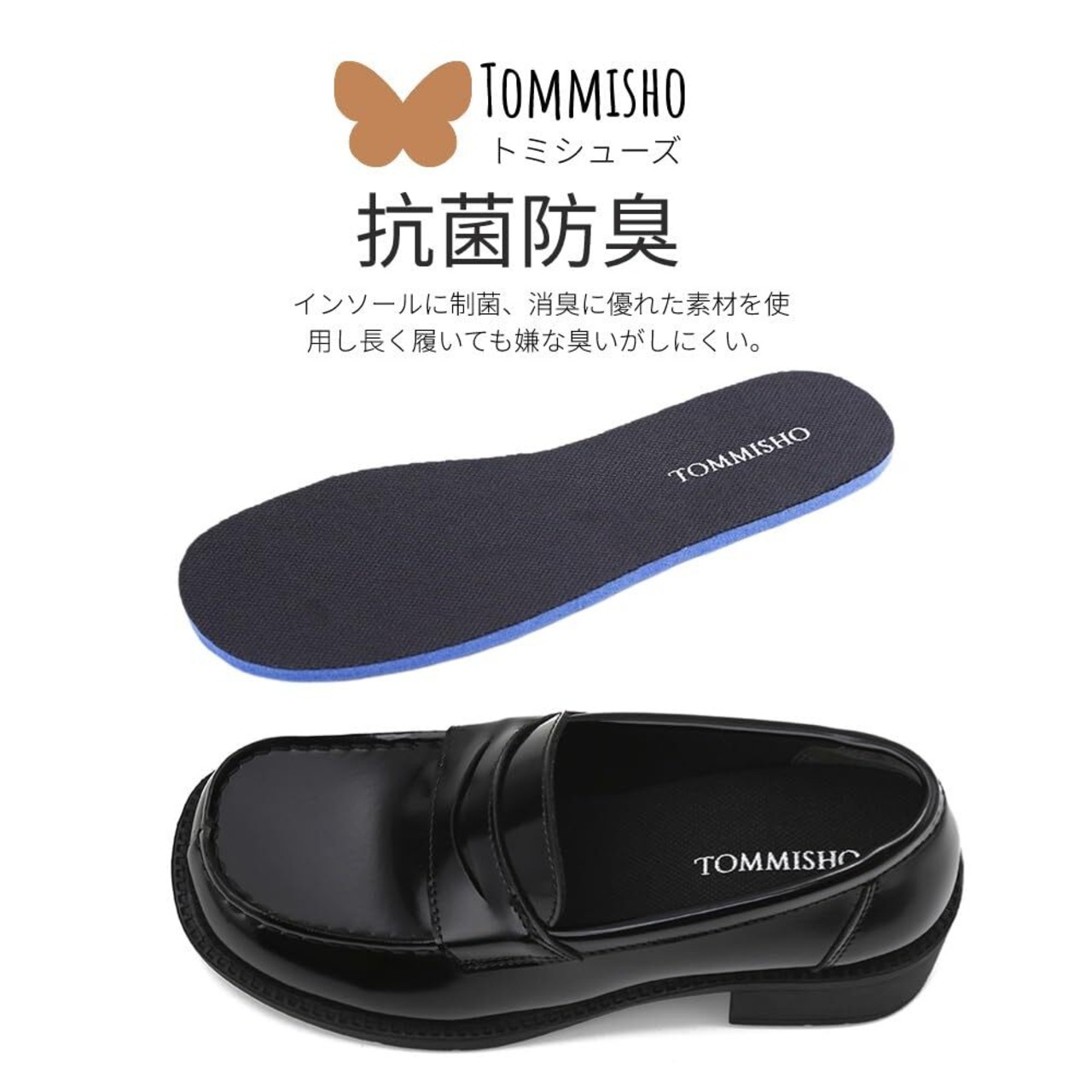 インソール:毎日履くローファーだから、インソール全面に抗菌防臭防滑素材を使用ました