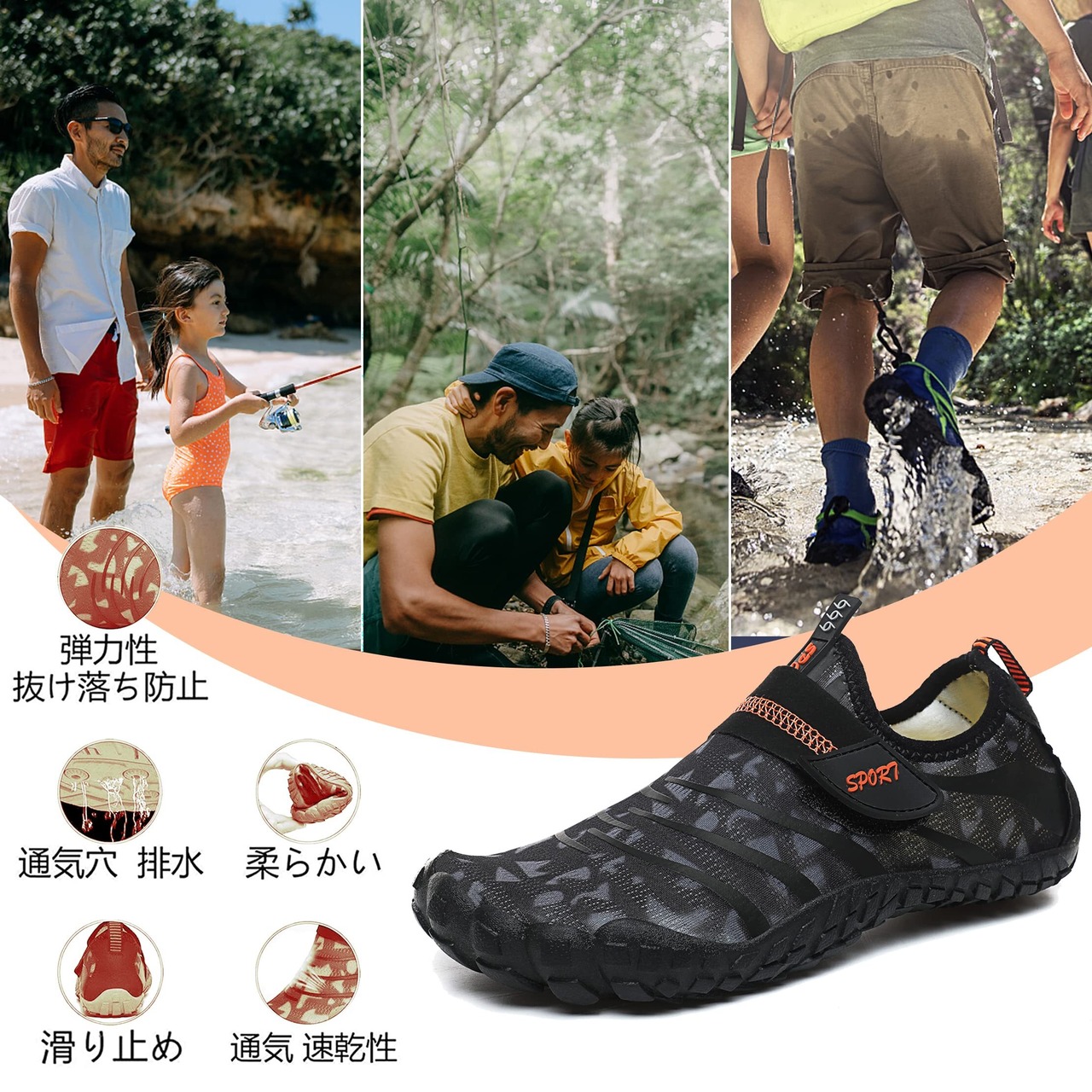 この靴は手軽く、クッションがよい。足に柔らかく履き心地よい。速乾ウォーターシューズは通気よく、スマートなデザイン 軽くて持ちやすい:手軽いウォーターシューズは柔らかい靴の甲と柔軟の底でもっと履きやすい。靴下を履いているように柔らかく快適。