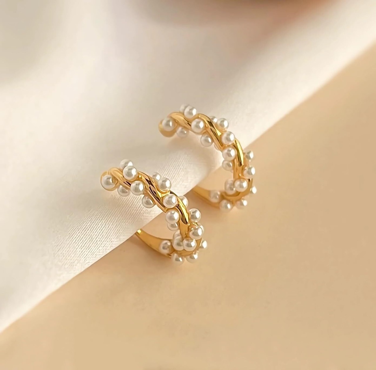 パールの優雅な輝き:このイヤリングには、美しいパールが飾られています。そのきらめく輝きと柔らかな質感は、女性の優雅さを際立たせること間違いなしです。パールの独特の魅力が、イヤリングに上品な雰囲気を与えます。