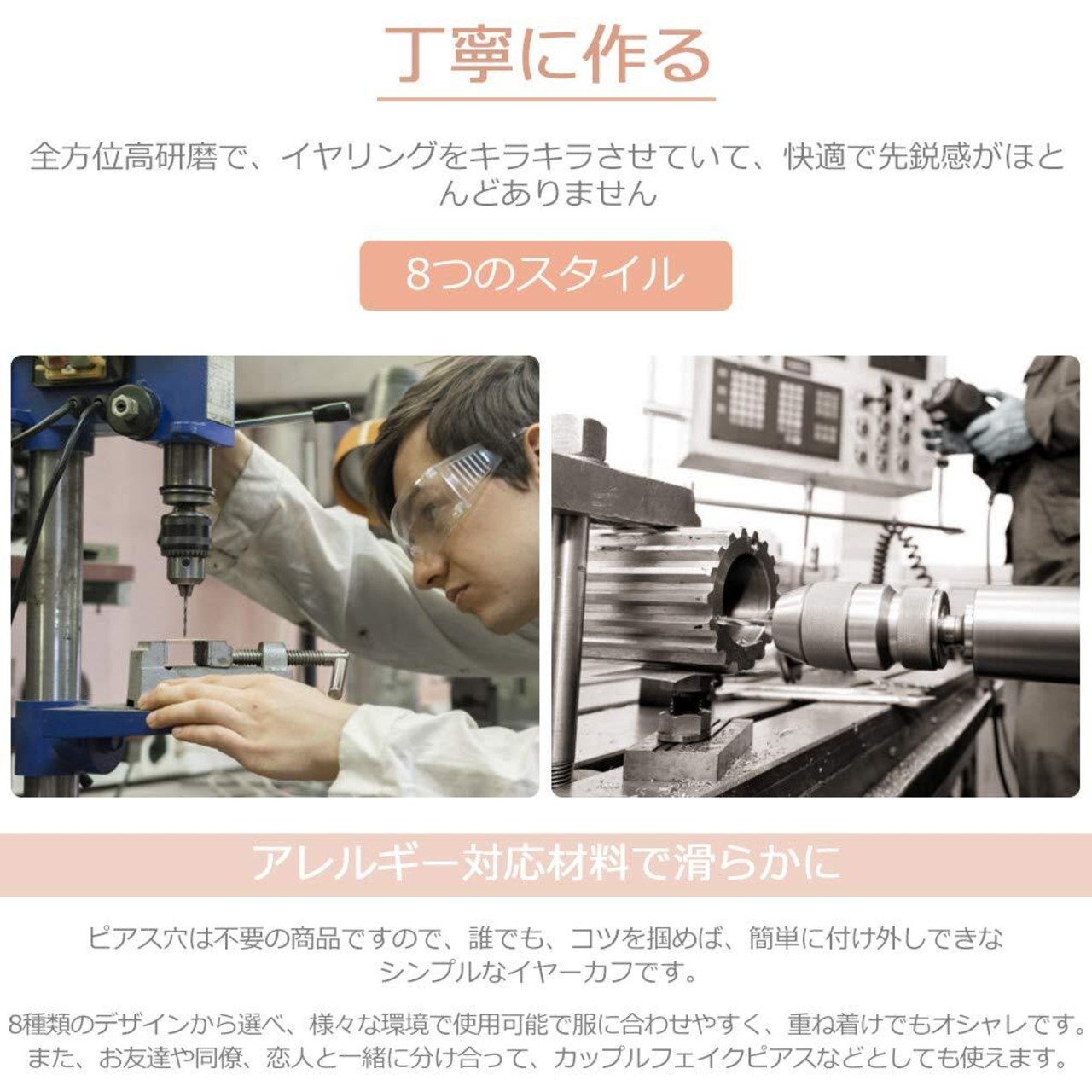 『使いやすい』軽くて付けやすいし、耳に挟むだけで簡単に装着完了で、見た目はまるでピアスを付けています。長時間付けても耳が痛くならなくて、シンプルデザインでありながら存在感をしっかりと持っています。
