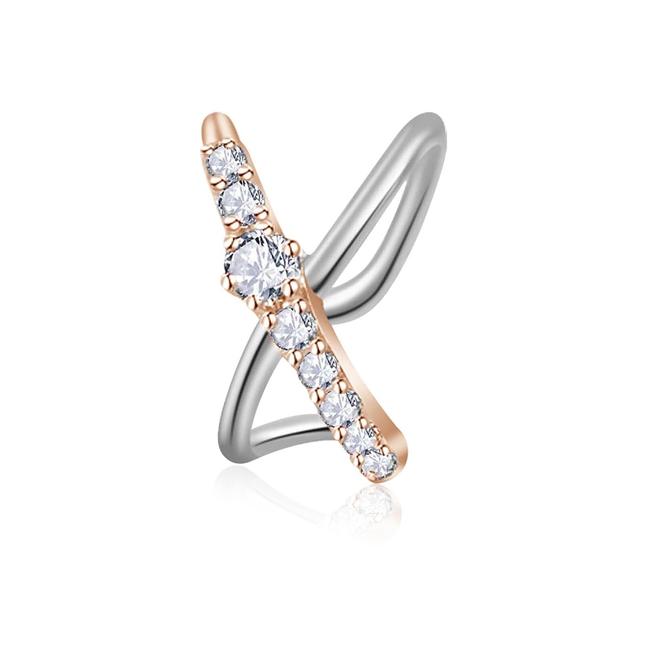 柔らかな曲線:クロス状のデザインにキラキラと輝く上質なジルコンを合わせて耳に華やかに飾ります。優しいピンクゴールドと優雅的なシルバーの組み合わせが、洗練された印象を与えます