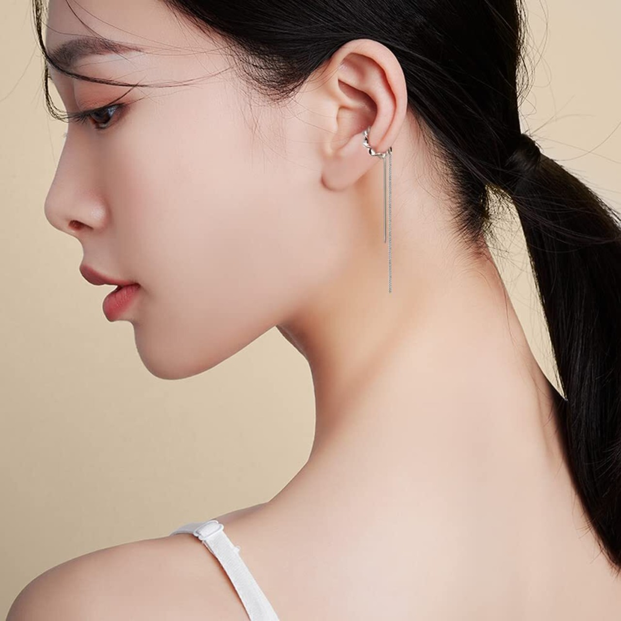 揺れ動く: このイヤーカフは、長いタッセルと細いバーが下に付いており、歩くたびに揺れ動きます。優雅でスタイリッシュ、軽やかで存在感があります