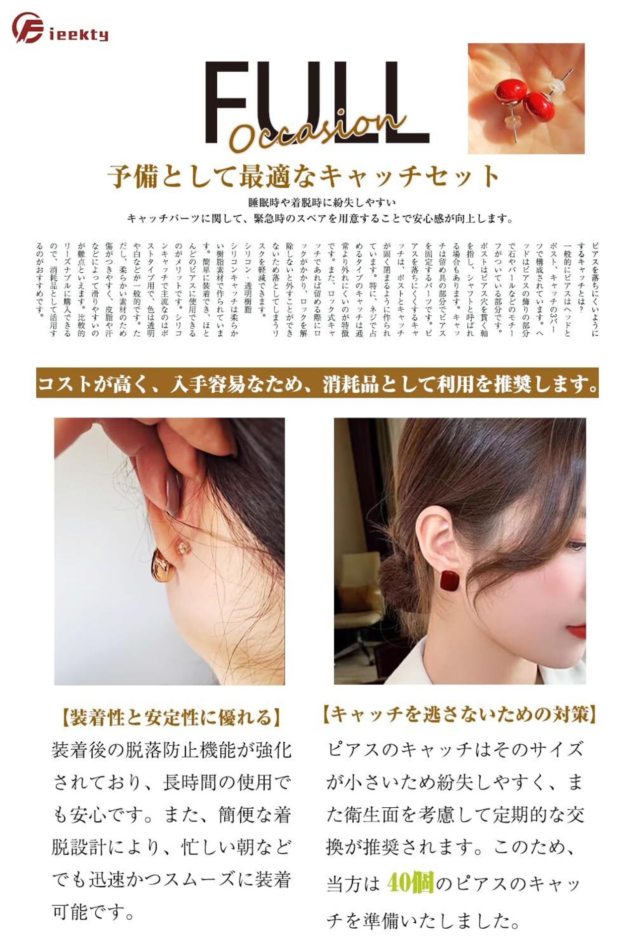 【キャッチを逃さないための対策】ピアスのキャッチはそのサイズが小さいため紛失しやすく、また衛生面を考慮して定期的な交換が推奨されます。このため、当方は40個のピアスのキャッチを準備いたしました。