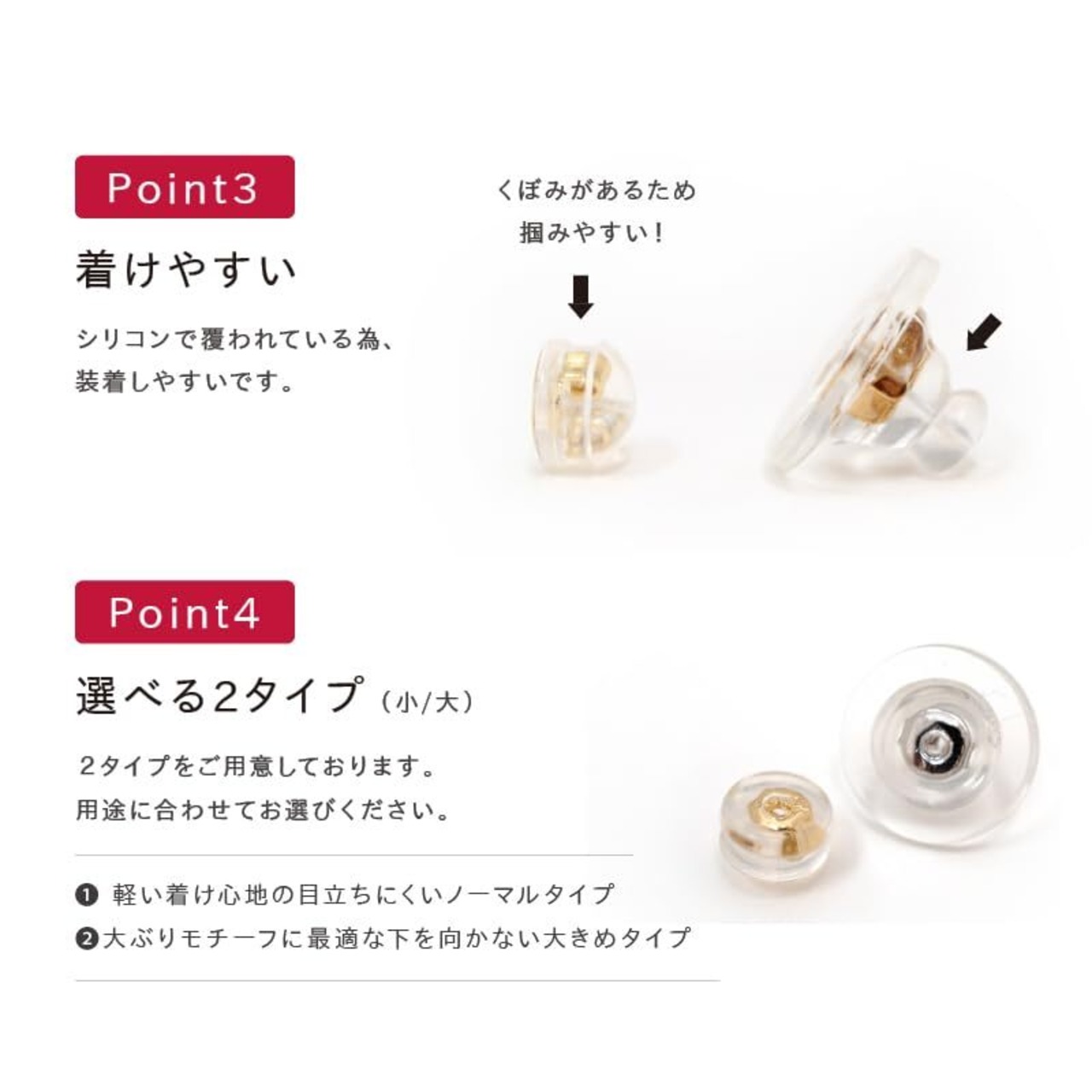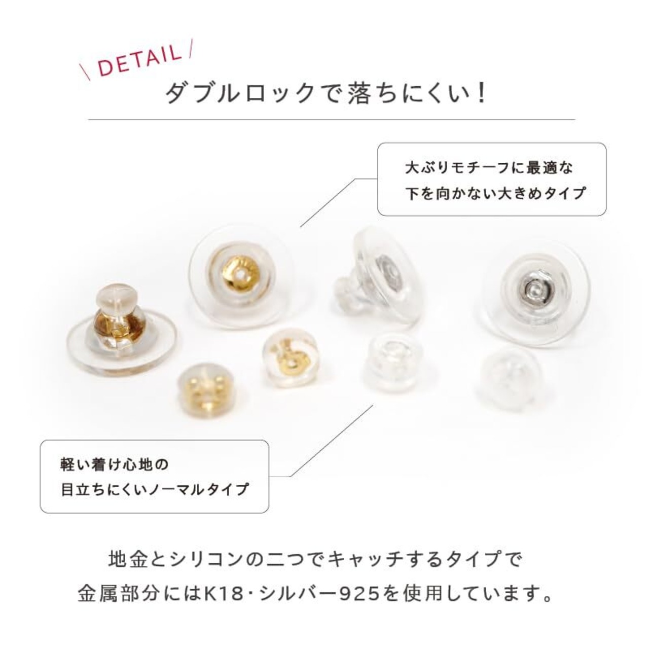 地金とシリコンの二つでキャッチするダブルロック式の落ちないピアスキャッチです。