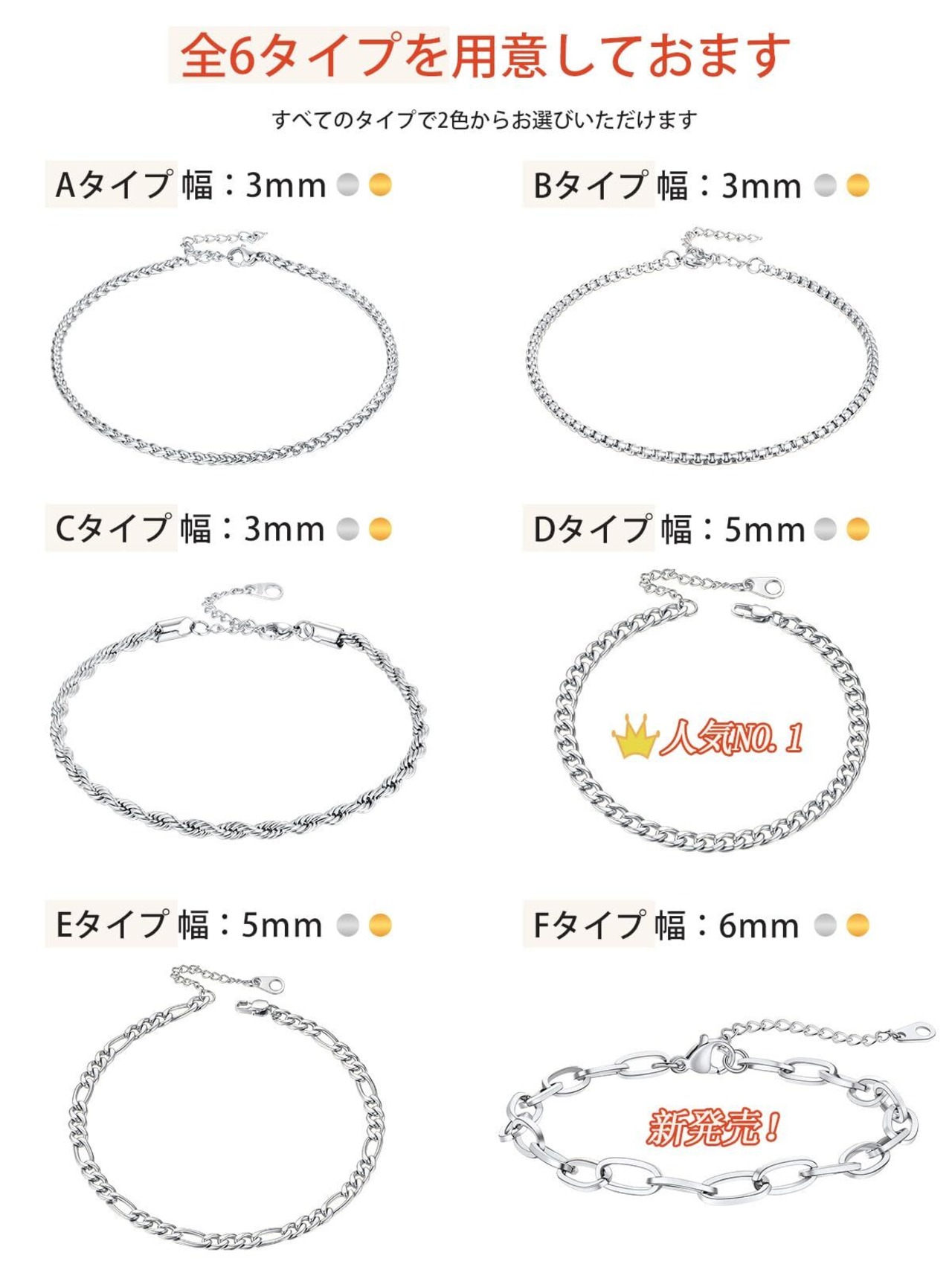 [アンクレット メンズ]チェーンの幅:3mm チェーンの長さ:22cm+5cmアジャスター カラー:(全2色)シルバー・ゴールド