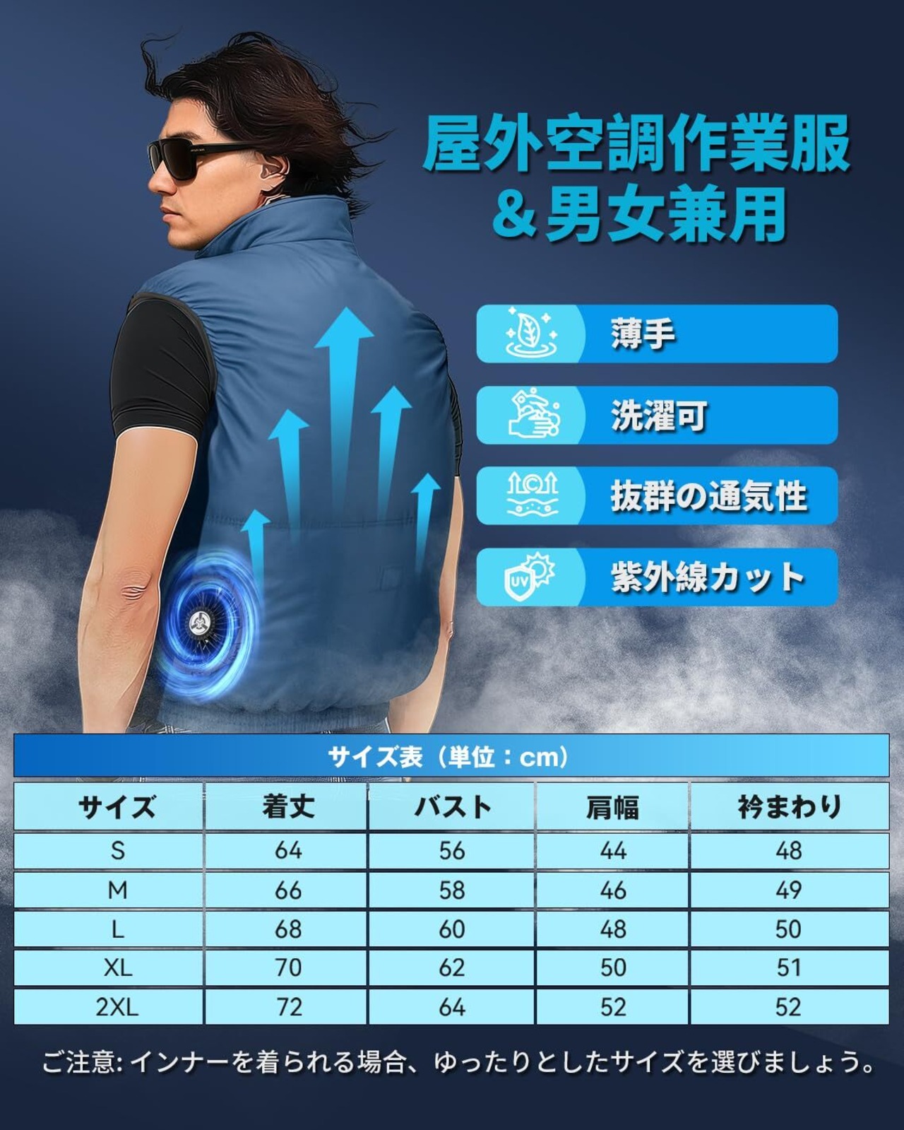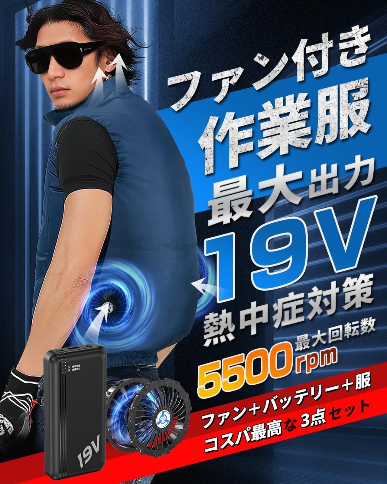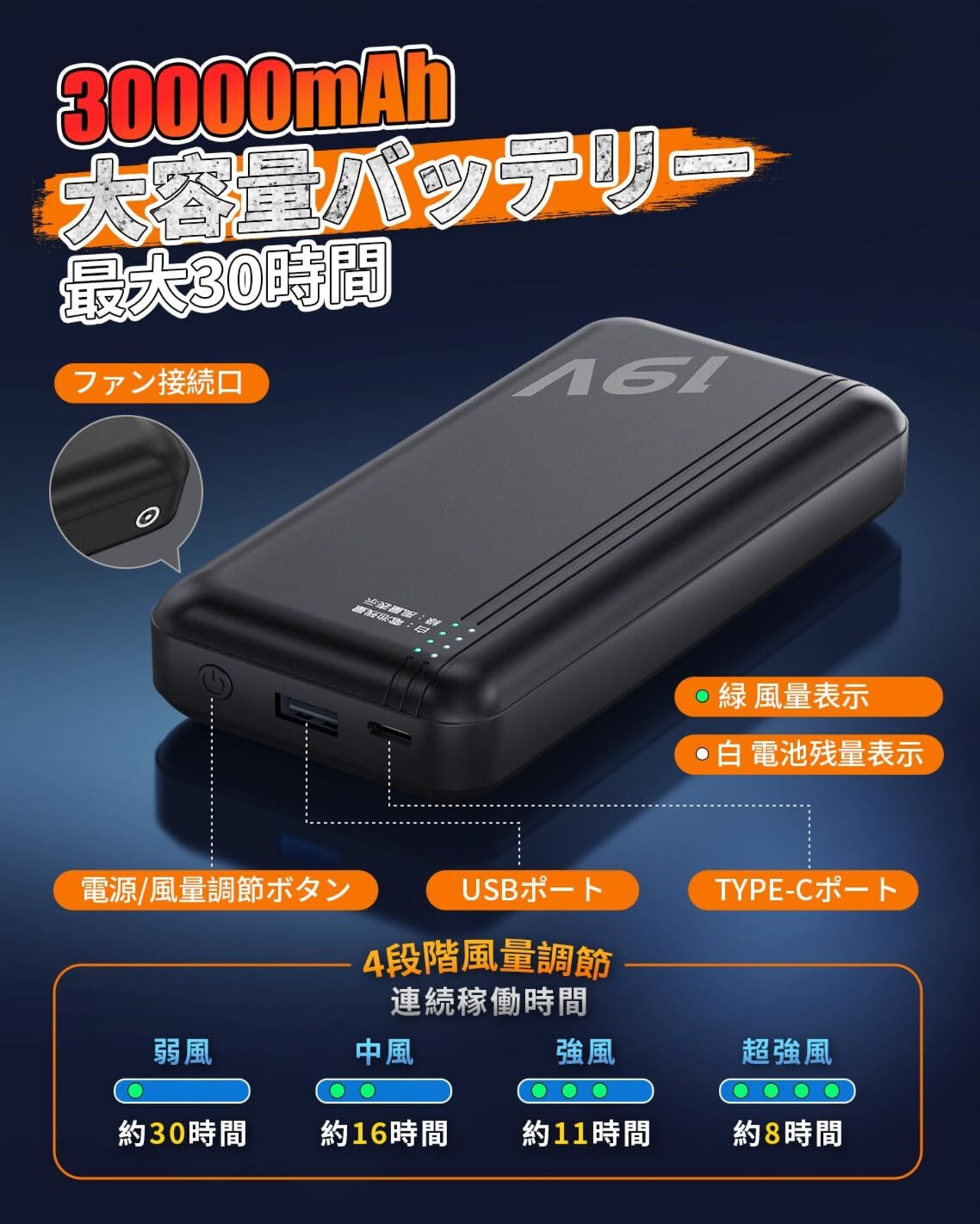 [Sumeriy] 2025暴風ファン & 30000mAh大容量バッテリー 空調作業服 ベスト ファン付きベスト 最大30時間連続使用 強化9枚羽根 4段階風量調節 大風量 ファンバッテリーセット 薄型 吸汗速乾 熱中症対策 UVカット 男女兼用