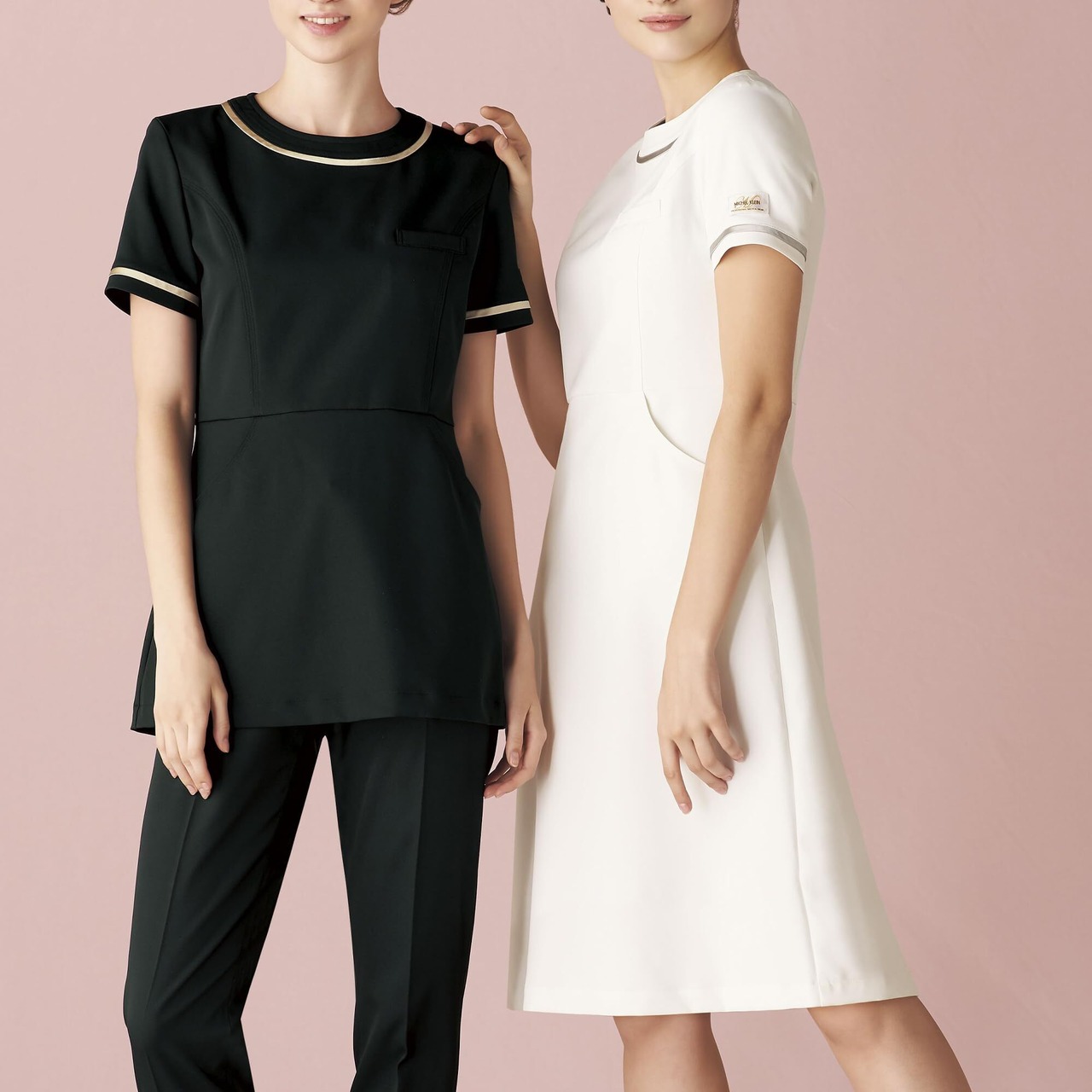 上品な雰囲気を与える厚みがある生地を使用して、軽い着心地ながらストレッチ性や制電、制菌など機能性も充実した商品です。 同型チュニック(MK0022)、型違いワンピース(MK0021)もございます。
