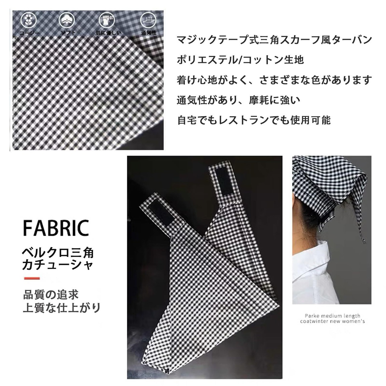 [YINKE] 三角巾 大人用 男女兼用 シンプル 無地 マジックテープ付き 簡単に取り付ける カフェ 調理実習 料理教室 清掃 美容院 業務用 家庭用 選べる