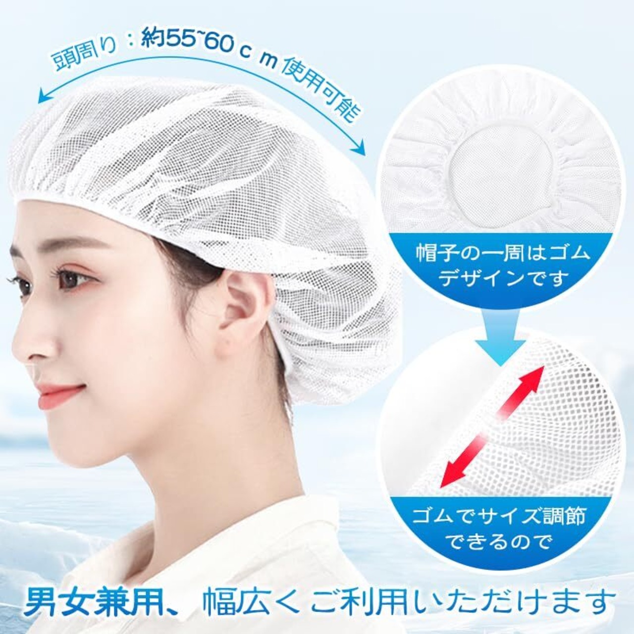 男女兼用衛生帽子:衛生キャップは、安全と快適を両立しています。毛髪混入防止機能と快適な着用性あります。作業の対象の安全を守りつつ、着用時のストレスを軽減することで作業効率をアップ。