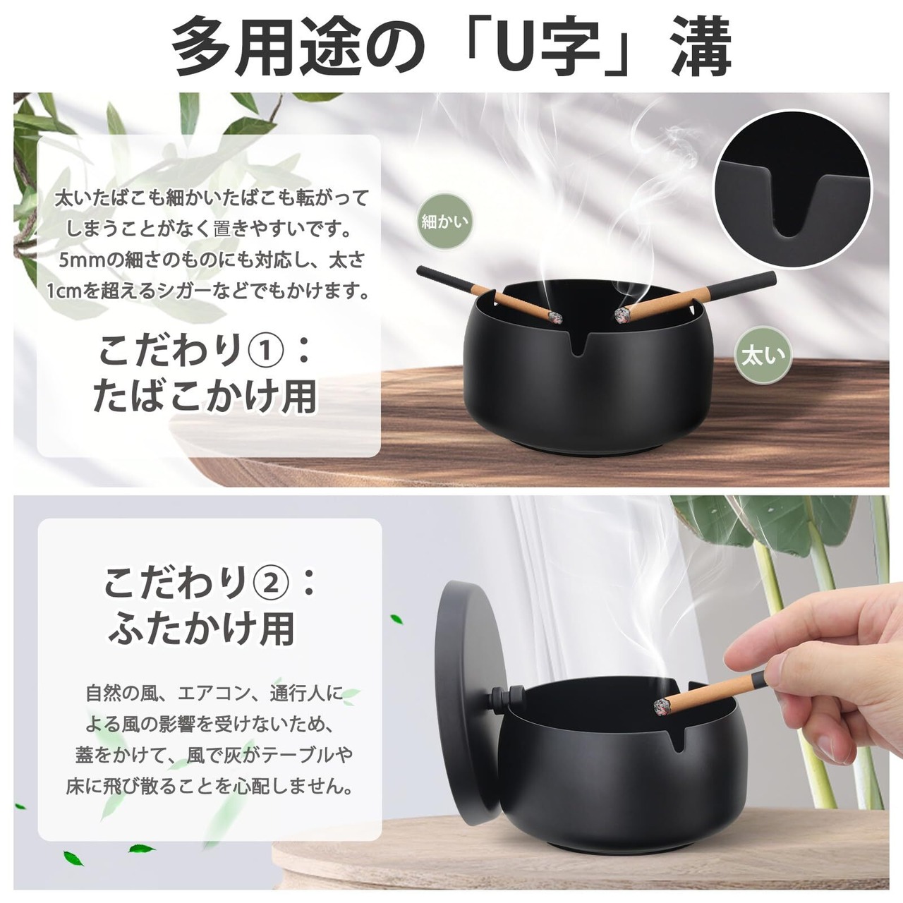 Perphin 灰皿 蓋付き 密閉 滑りとめ はいざら 屋外 室内 卓上 灰皿 おしゃれ 大容量 ステンレス製(M ブラック)