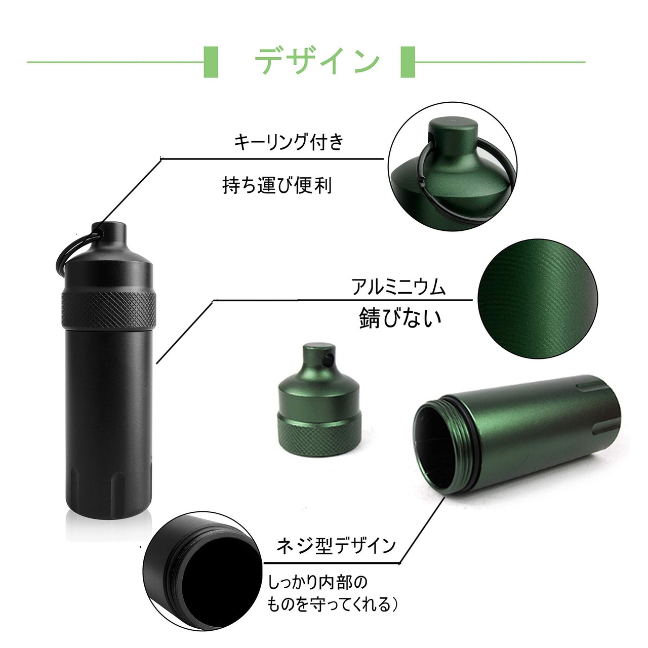【多機能】 このシリンダー容器は防水性、密閉性が良いです。口のところはネジ型なデザインで、雨の日でも水に落ちても、しっかり内部の物を守れます。更に携帯灰皿としてだけではなく、シガレット、カギ、電池、USBなどの小物を収納できます。