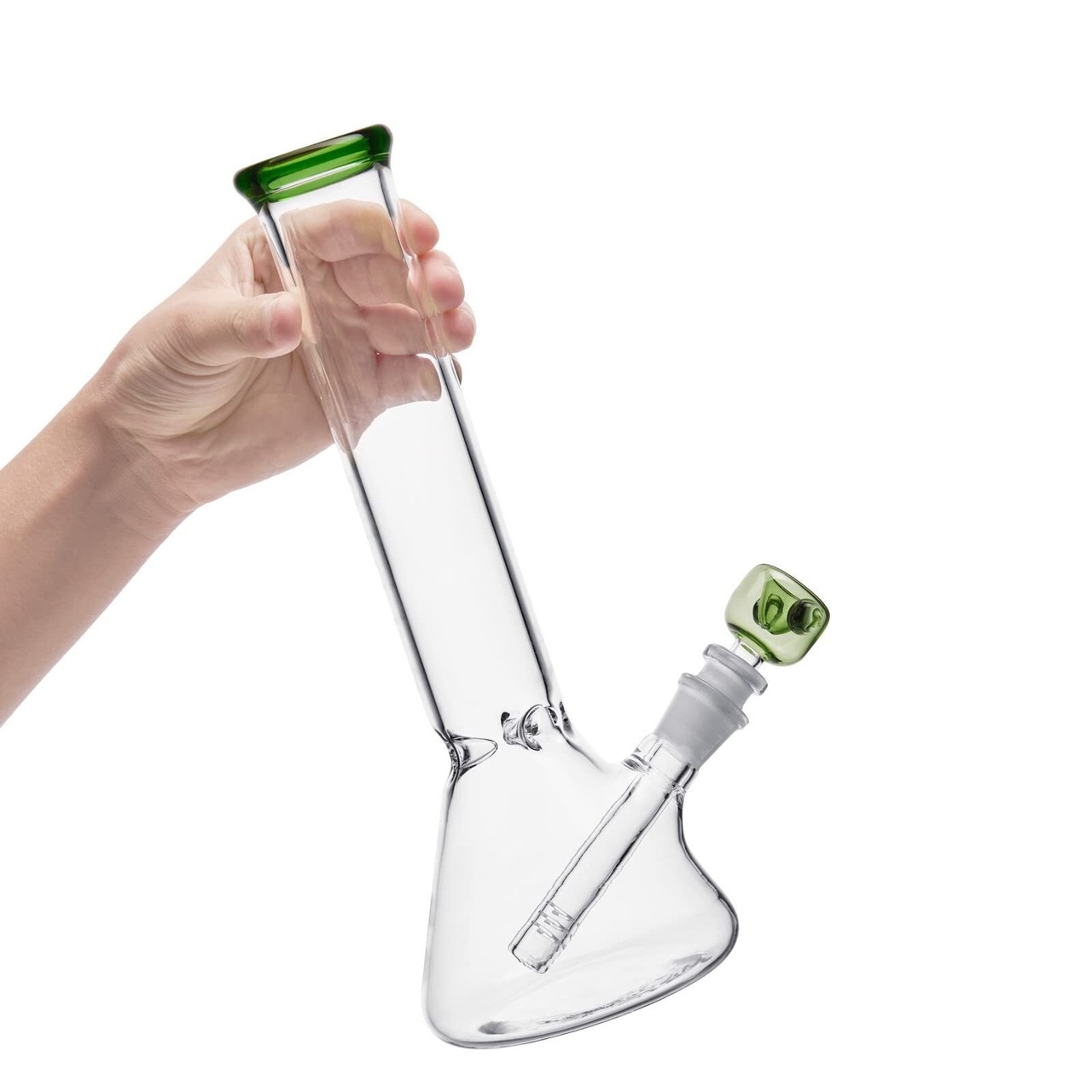 10.6 "背の高いガラス ボング 14.5mm ガラス水パイプ 喫煙水パイプ パーコレーター フィルター リサイクラー ボング ダウンステム ボウル アダプター付き (Green)