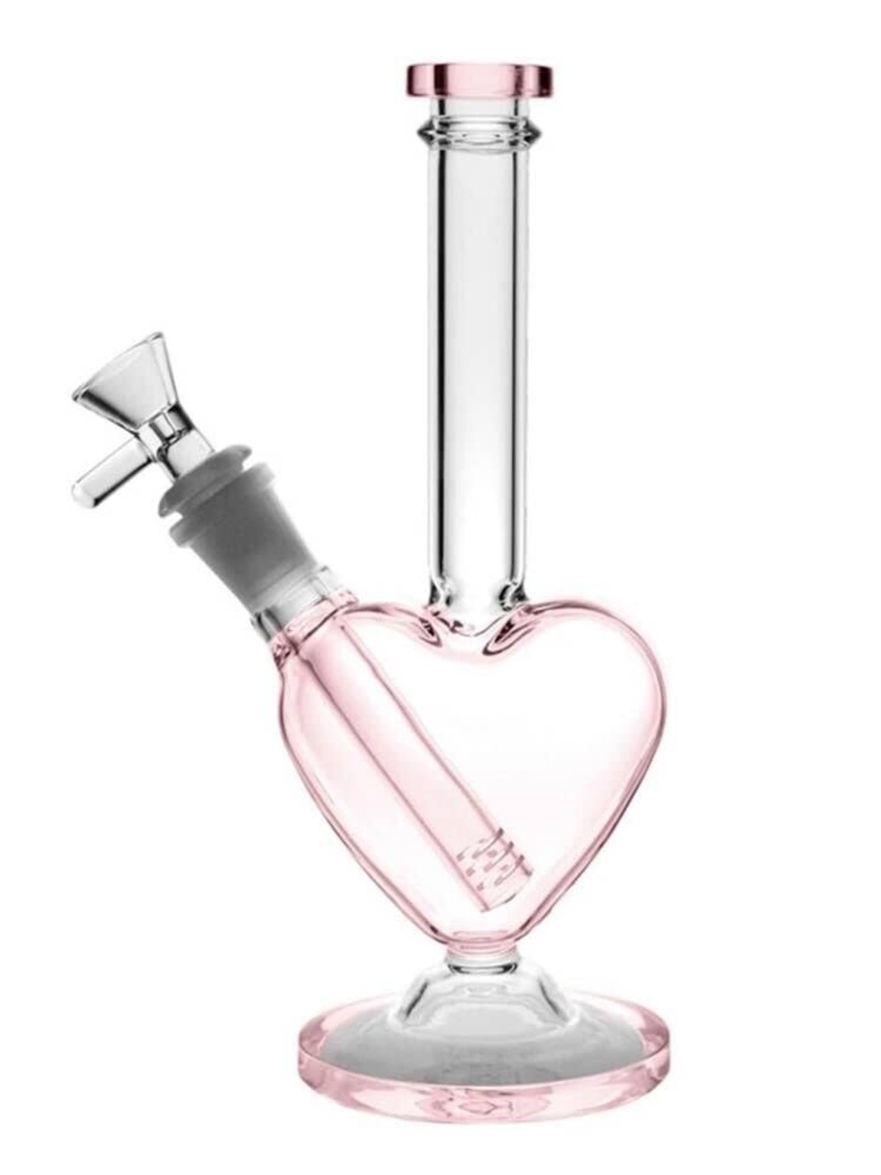 ハート形ガラスボングウォーターパイプダブルレイヤーフィルタースモーキングパイプリサイクラーハンドメイドトール厚いボング (Pink)