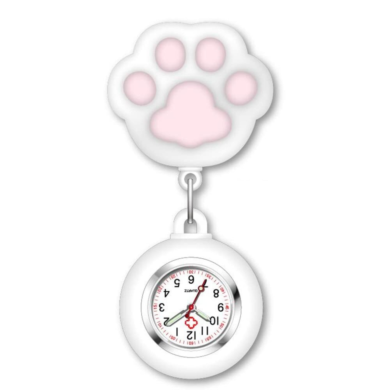 LIKENNY ナースウォッチ 懐中時計ク 時計 見やすい看護師医療所 かわいい クリップ バッジ ポケットウォッチ 男女兼用 ォーツ 伸び縮み可能 クリップ付き シンプルで防水 逆さ文字盤 猫の爪(白)