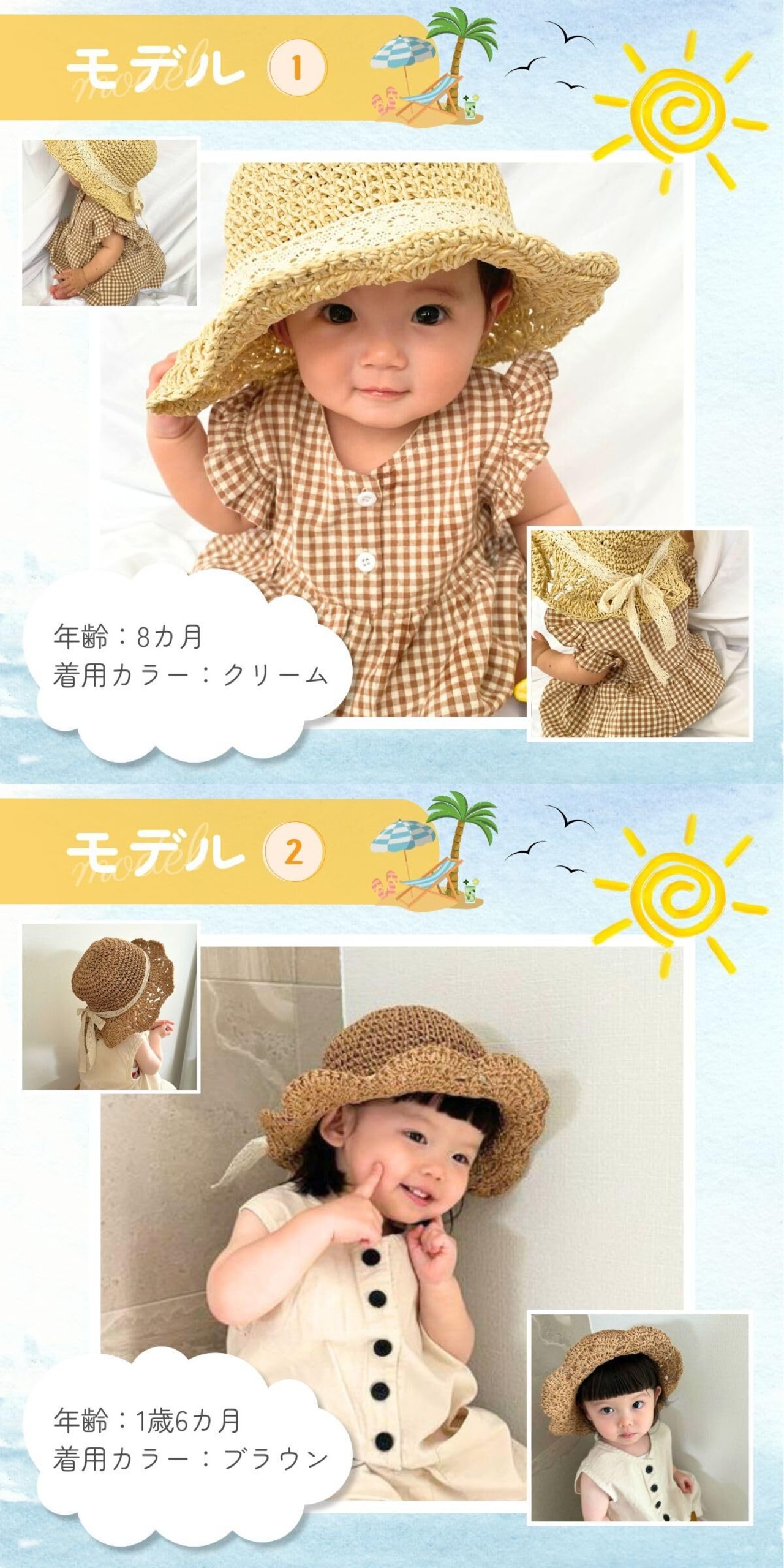 [lua Citron] 3色 紐付き サイズ調節可能 麦わら 帽子 麦わら帽子 52cm 春 夏 秋 冬 子供 赤ちゃん キッズ服 ベビー服 出産祝い プレゼント 日よけ キャップ メッシュ 熱中症対策 軽量 折りたたみ ベビー 幼児 新生児 子供服 春夏