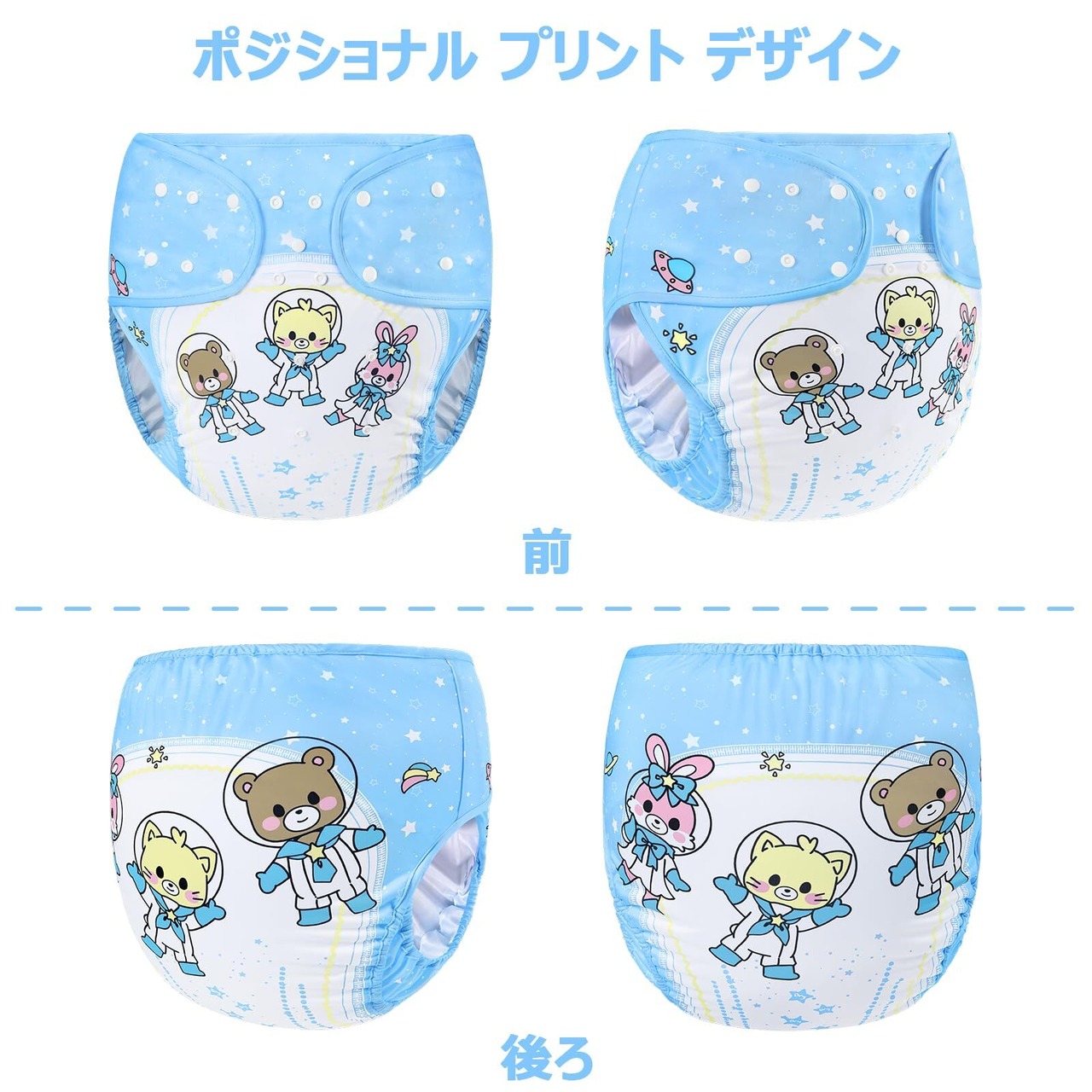 LittleForBig 大人用おむつカバー 可愛い絵柄【ベビー宇宙員】調節可能なウエストと長さ スナップ付 漏れ防止 通気性 洗濯可