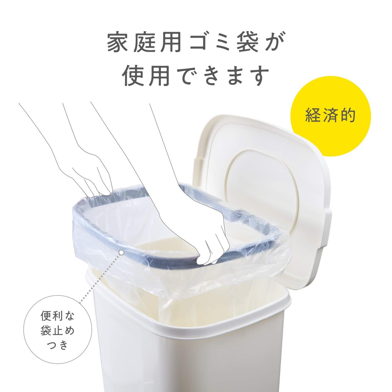 材質:上フタ・内フタ・本体・袋止め・カム/ポリプロピレン ペダル部/ABS樹脂 パッキン/発泡ポリエチレン