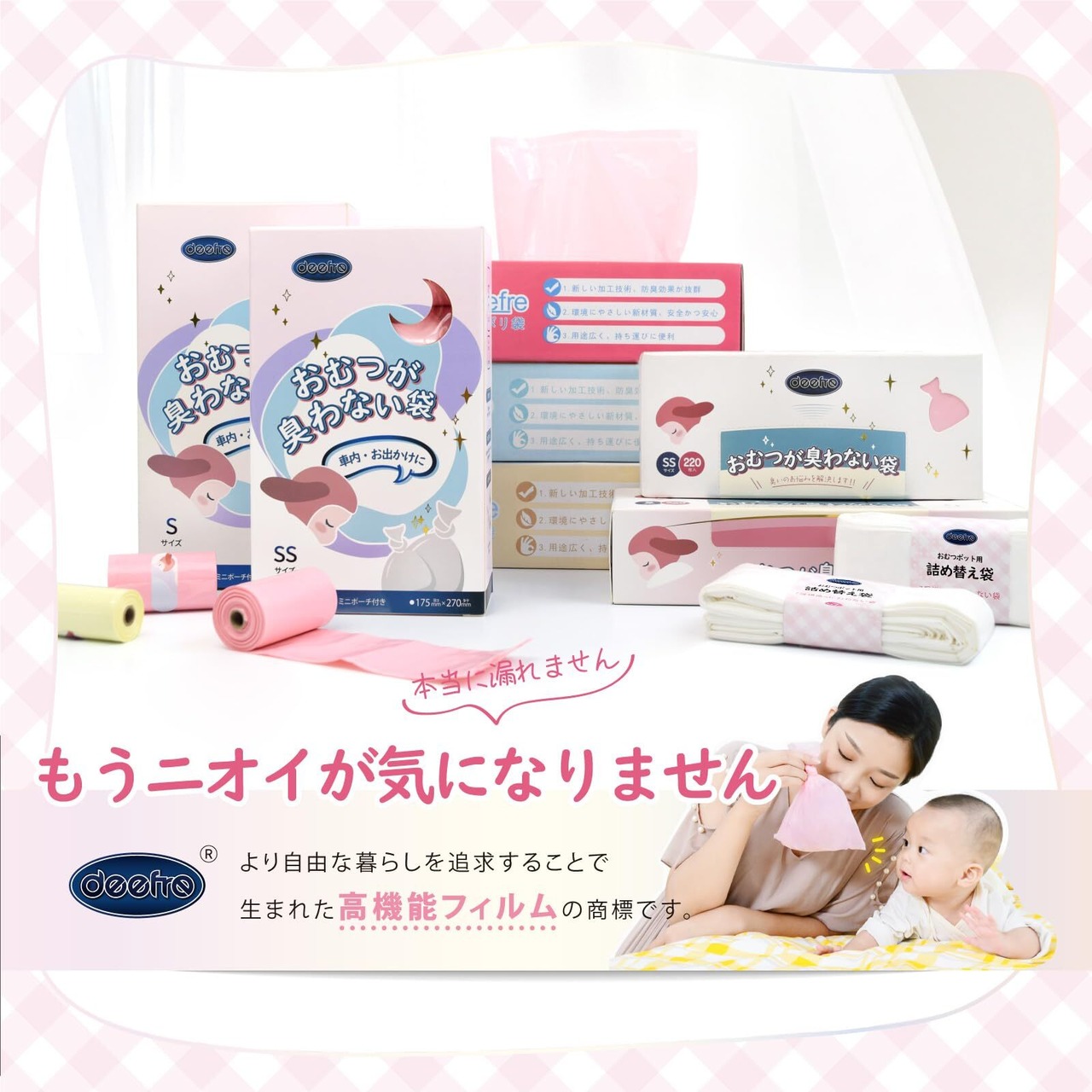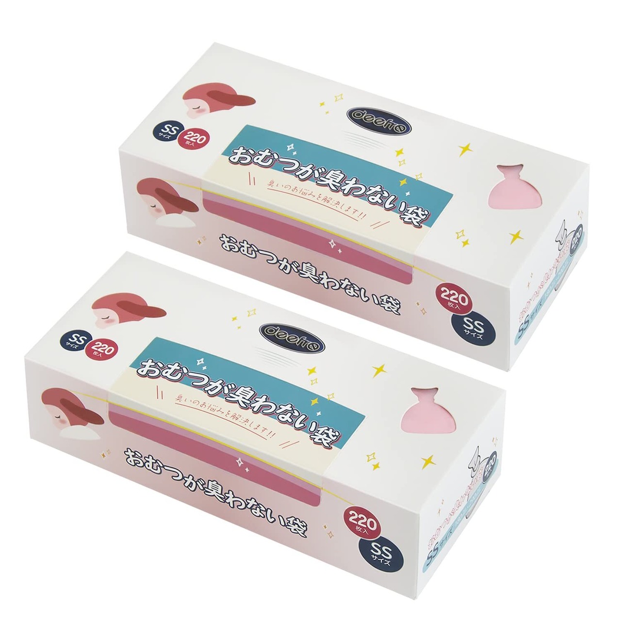 Deefre おむつが臭わない袋 SSサイズ 220枚x2個セット におわない袋 防臭袋 おむつ処理袋 大容量 生ごみが臭わない袋 7層フィルム 破れにくい エチケット袋【18×29cm ピンク】
