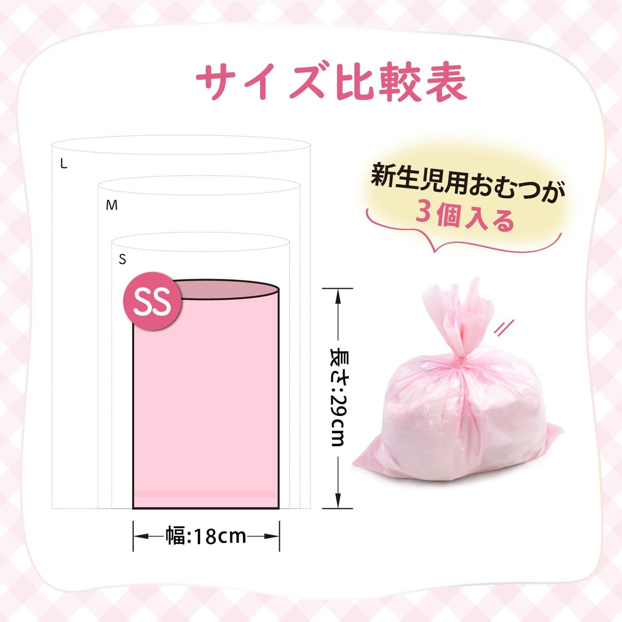 【サイズ】SS:縦29cm*横18cm。旧SSサイズの袋より縦が2cm大きくなっています。新生児用おむつを3~4個くらい収納できます。