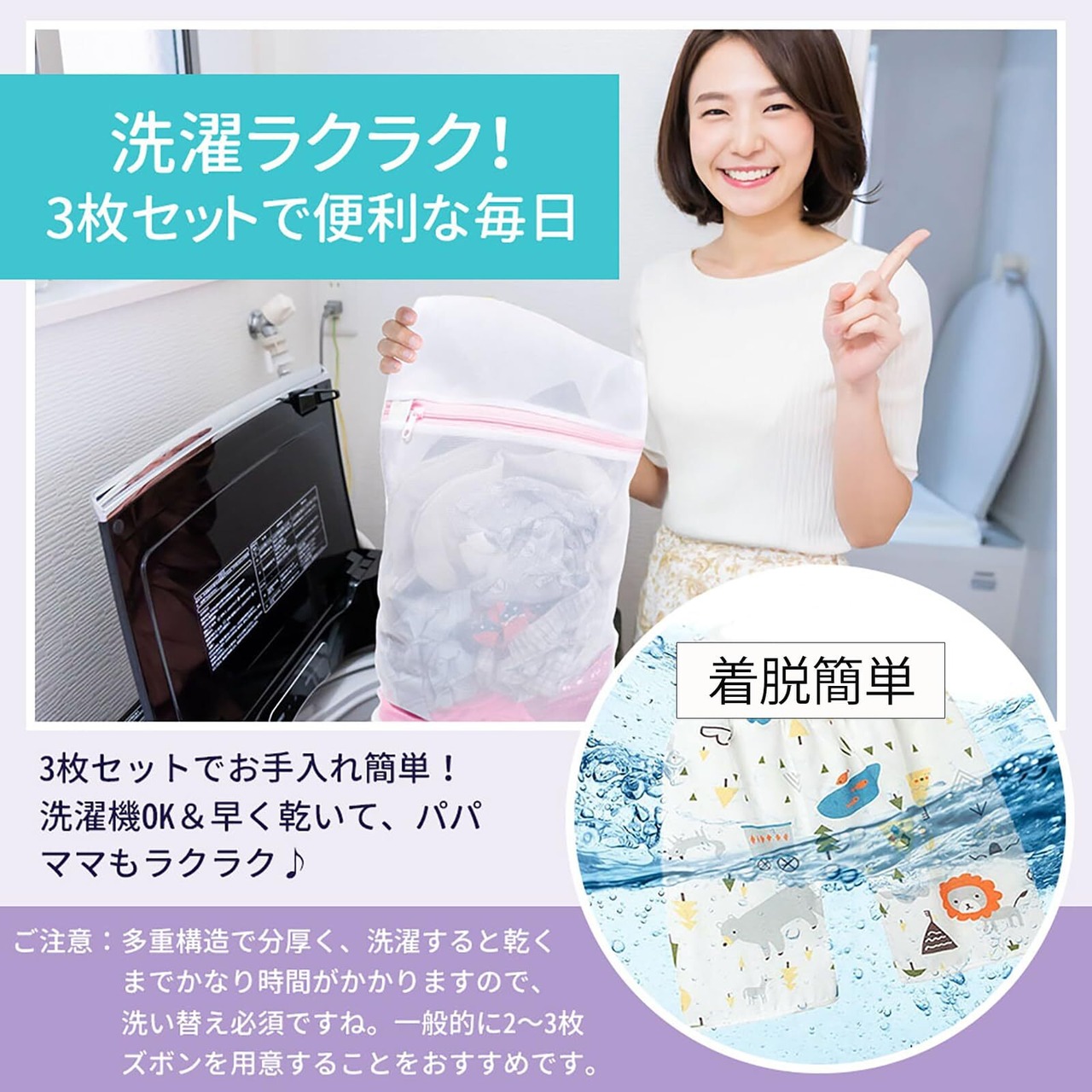 ズボンタイプなので、激しく動いてもめくれにくく、しっかりとお子様を守ります。お得な3枚セットで、毎日の使用に便利です。