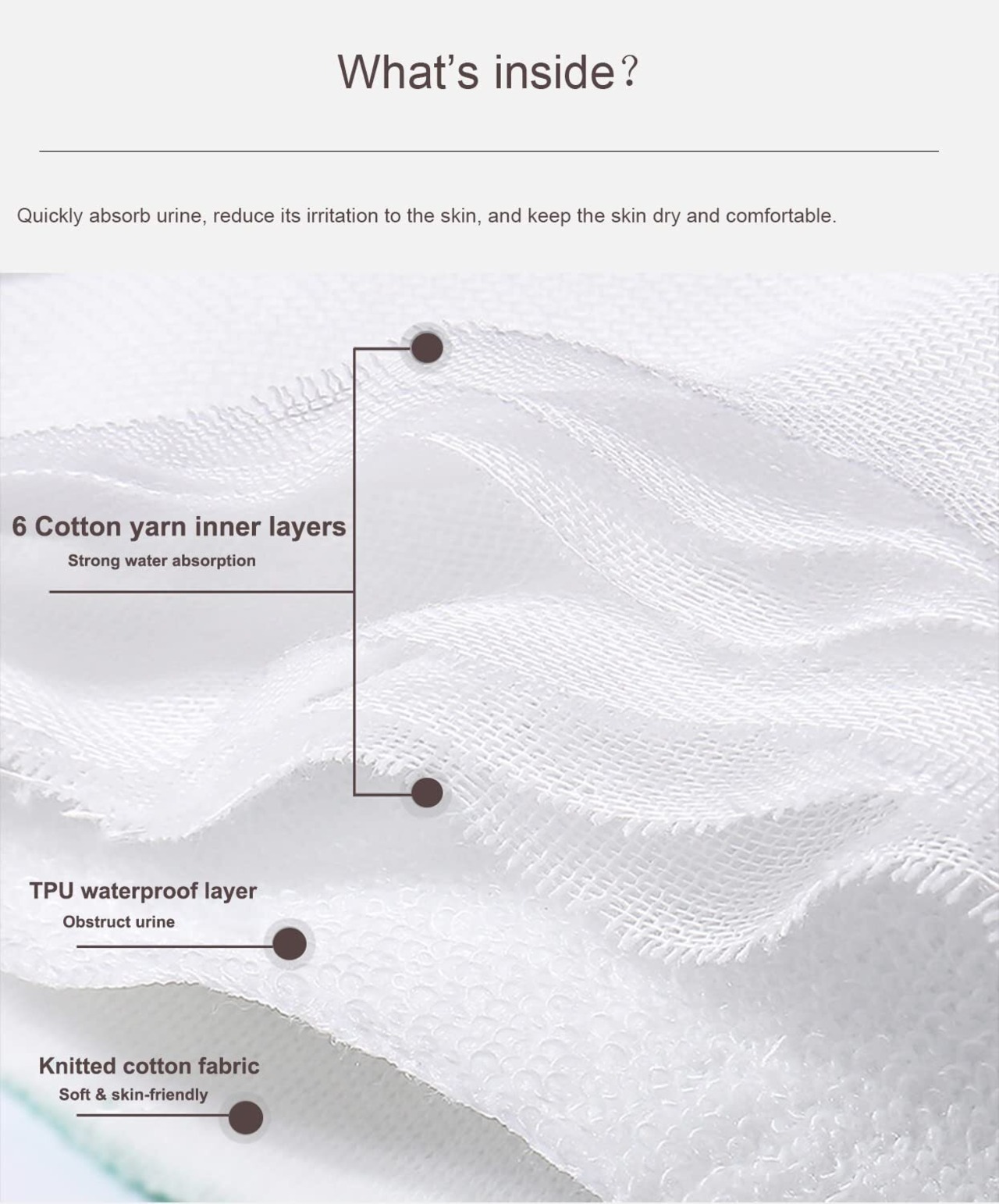 2. 6 層のコットンリブが編み込まれており、小さな事故を最小限に抑えながら幼児が濡れを感じることができます。