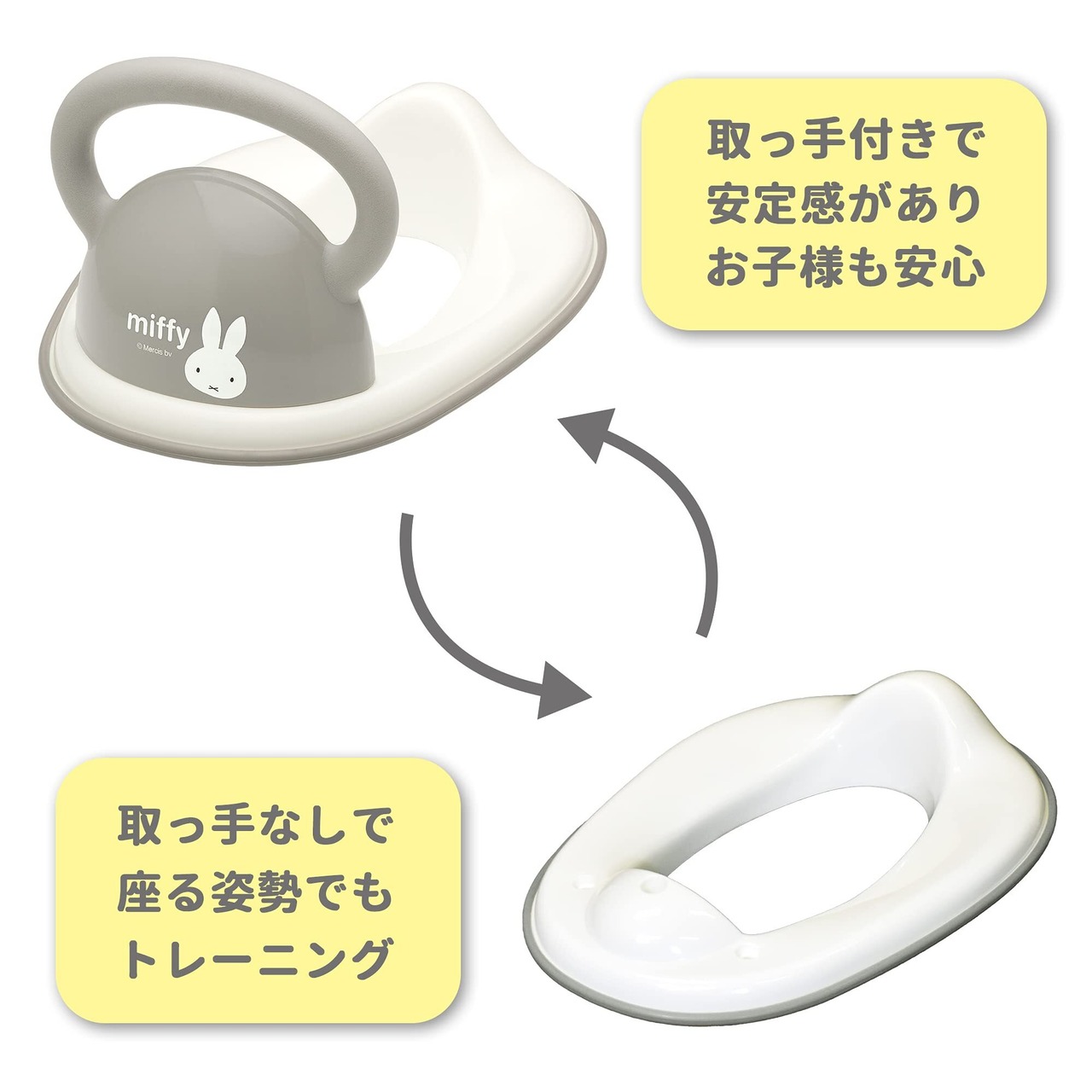 永和 ミッフィー補助便座 グレー ベビー トイレトレーニング おまる・補助便座 取っ手付き おしっこガード 飛び散り防ぐ 滑り止め 組み立て簡単