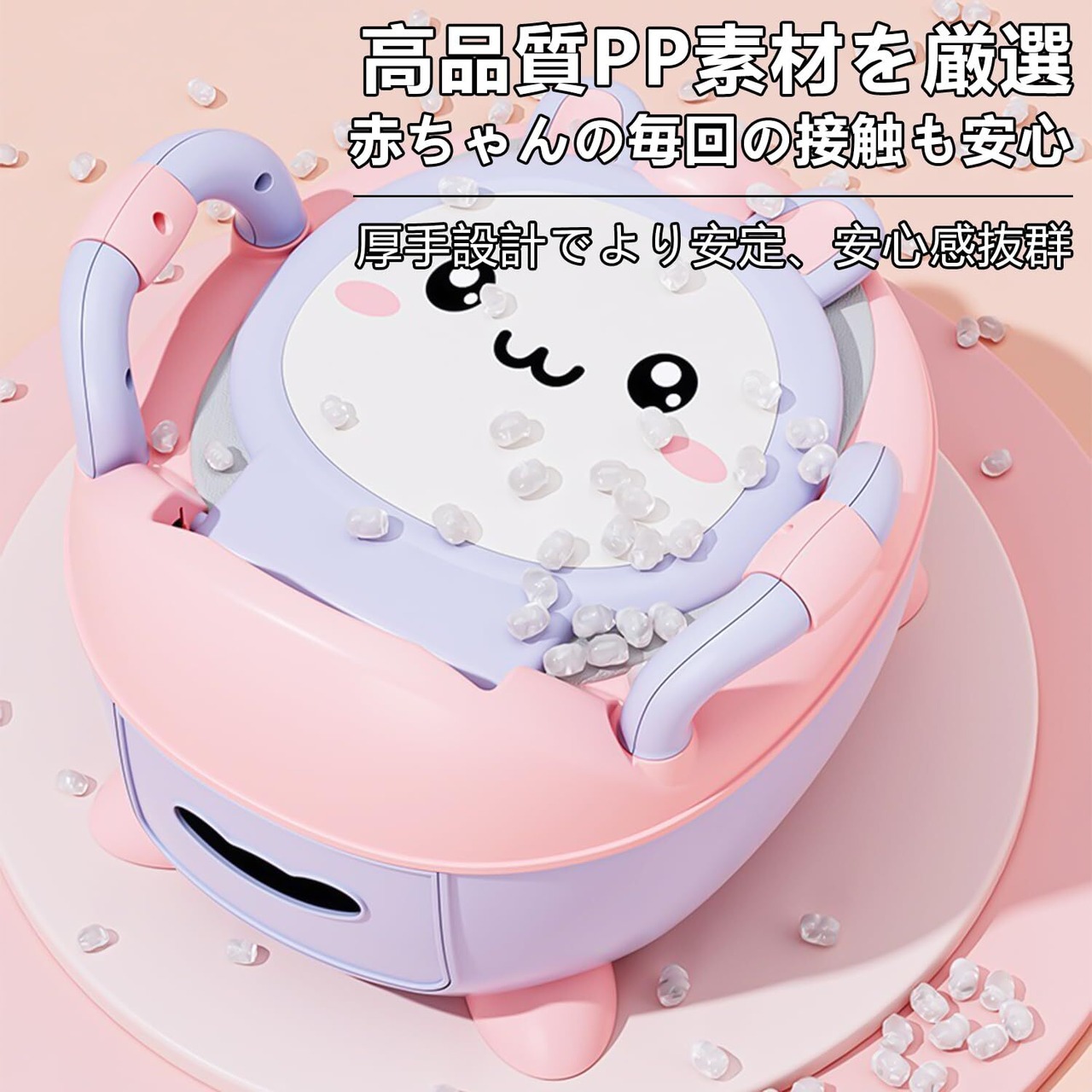 【楽しいトイレトレーニング】:このトイレトレーニング用ポットは、お子様が自信と自立心を養うのをサポートします。可愛いうさぎのデザインがお子様の興味を引き、トイレトレーニングを楽しく魅力的にします。人間工学に基づいた背もたれとハンドルを備えており、お子様が簡単かつ快適に学べるよう工夫されています。
