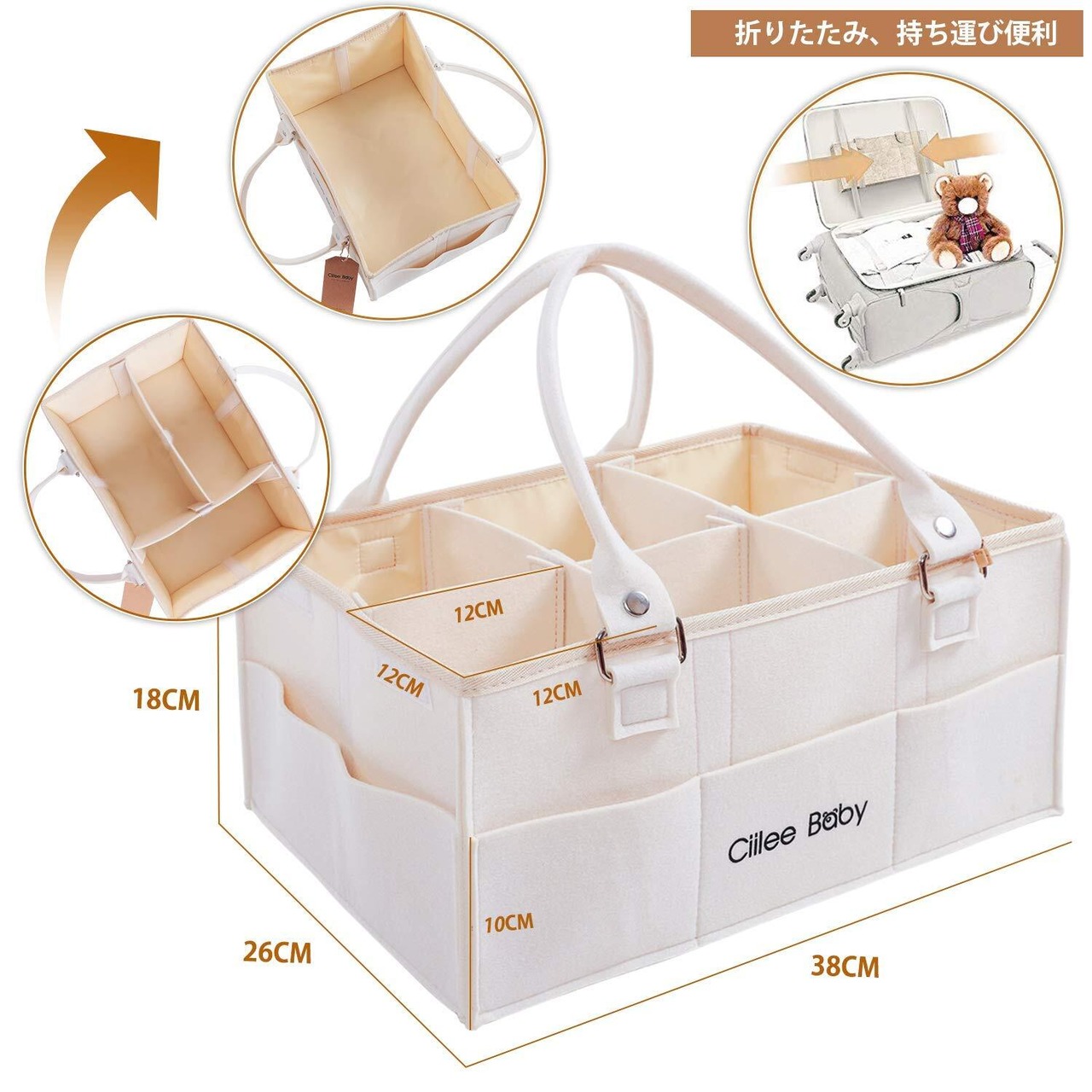 【ベビー用品収納楽々】素材:環境に優しいフェルト布。 展開サイズは38×26×18cm、折りたたみサイズは38×18×4cmです。 取っ手の長さは50cmで、インサートが5つとカバーが1つあります。※フェルトの特質で折りたたみ形式で出荷の為、少しシワがあります、予めご了承くださいませ。