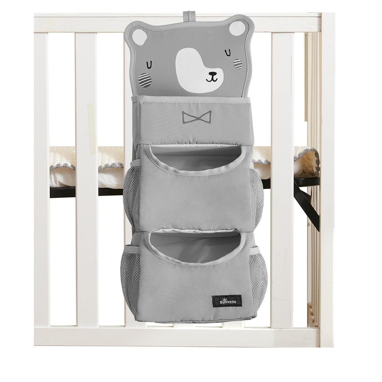 SUNEVNO ハンギングベビーおむつキャディオーガナイザー おむつスタッカー ベビーベッド吊り下げ分類ストレージバッグオーガナイザー おむつ交換テーブルベビーベッドプレイヤードまたは壁&保育園の整理に (灰色の熊)