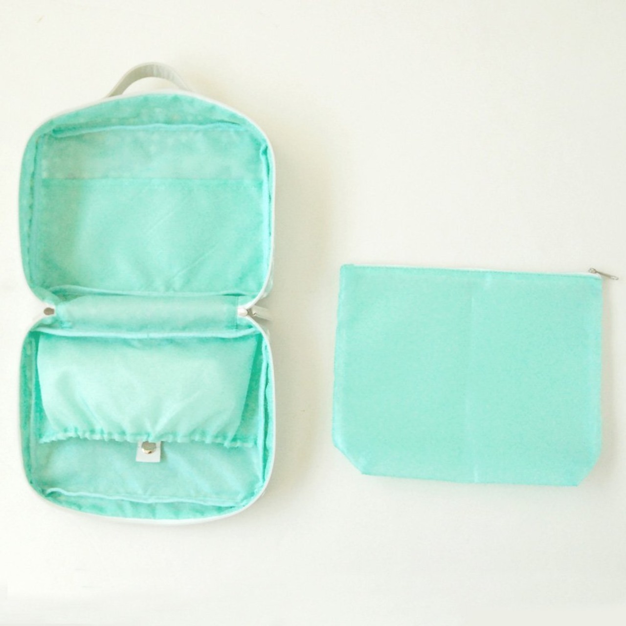 ベビーとのお出かけ時に必要なおむつや小物をまとめて入れられるポーチです。消臭加工(デオドラントネーム(R))を施したポーチつきで、使用済みのおむつを入れるのに最適です。おしりふきやポケットティッシュがセットできて、前面からすぐに出すことができます。おしりふきやポケットティッシュがセットできて、前面からすぐに出すことができます。また、持ち手が付いているので、ベビーカーのフックに掛けたり、外出時の持ち運びにとても便利です。外側はポリオレフィン加工を施しているので、汚れてもさっと拭き取れます。お子さまがおむつ卒業後は、ママのトラベルポーチや化粧ポーチ、お子さまのミニバッグなどとしても使えます。ブルーサーフとバニラアイスの2色あります。
