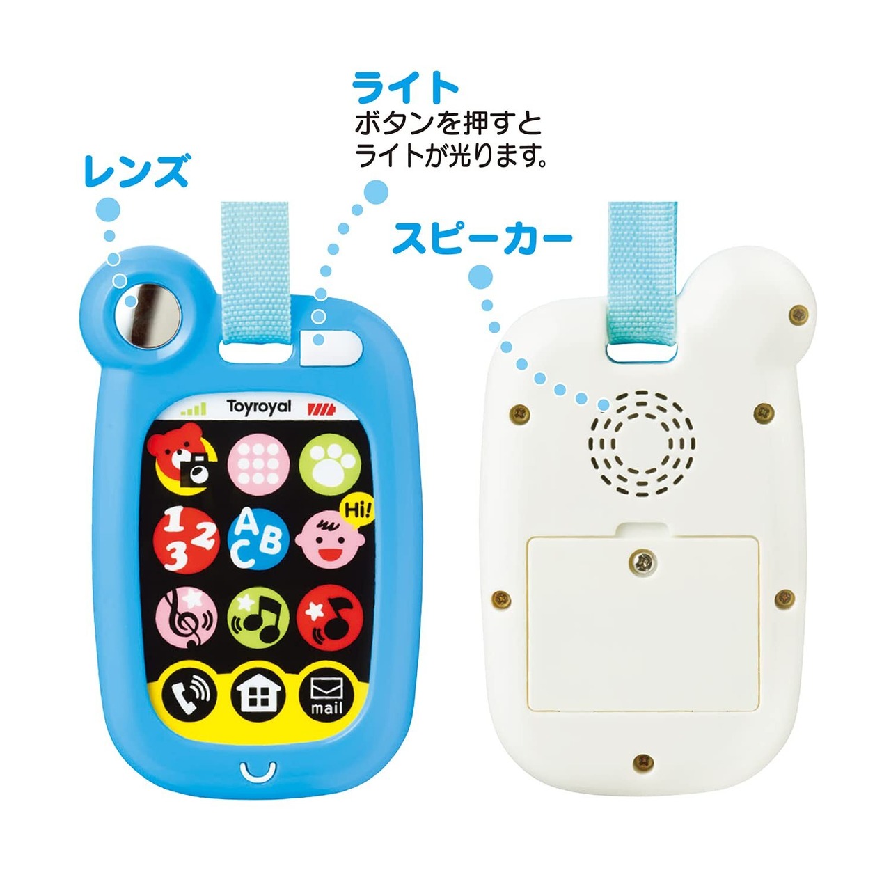 トイローヤル おでかけスマートホン ( ブルー ) 赤ちゃん用スマホ ( 音の出るおもちゃ / 光るおもちゃ ) 持ち運び 知育玩具 男の子 女の子