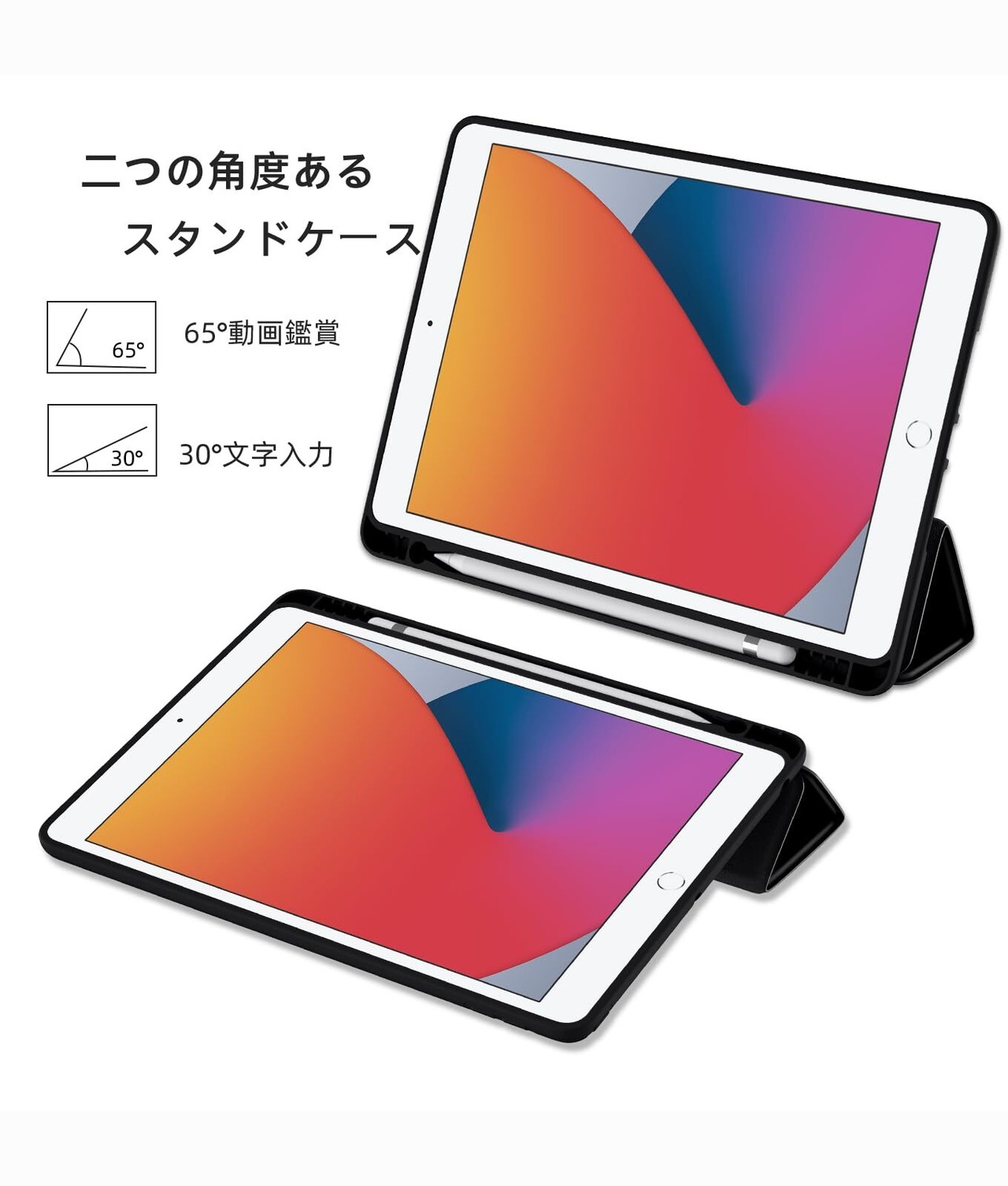Maledan 対応iPad 9世代 ケース ペン収納 対応iPad ケース 第8世代 軽薄 衝撃吸収 TPU スタンド機能付き オートスリープ/ウェイク 対応iPad 第9世代 ケース