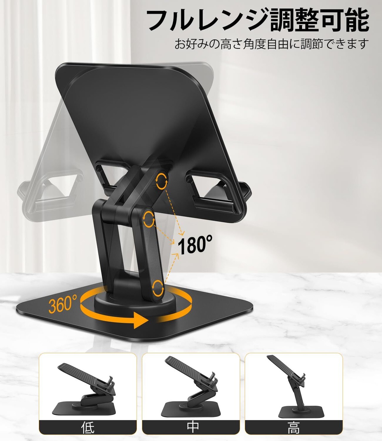 タブレット スタンド iPad スタンド スマホ スタンド 卓上置き 折り畳み式 360°回転可能 高さ角度調整可能 コンパクト タブレットホルダー 滑り止め 安定性拔群 人間工学設計 iPad/iPad Pro/スマホ/モバイルモニター/Switch/Kindle/Fire HD多機種対応