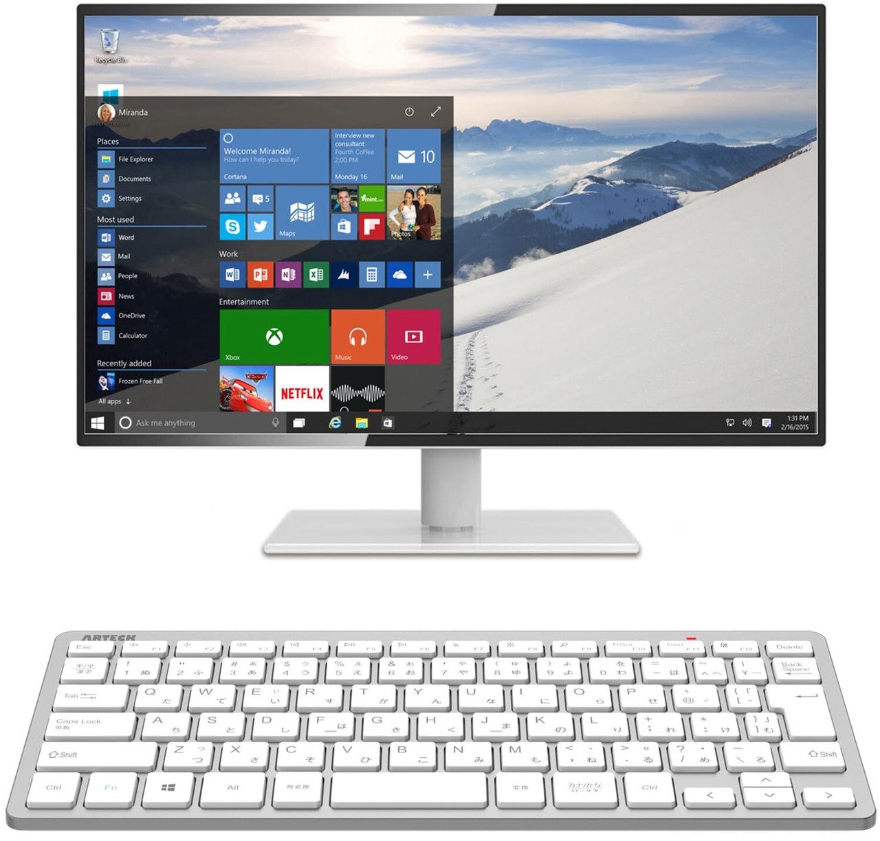 Arteck 2.4Gワイヤレスキーボード 無線 軽量 コンパクトメディア機能 ホットキー ショートカット コンピューター、デスクトップ、PC、ラップトップ、Surface、スマートテレビ、Windows11/10/8/7との交換性あり、シルバー