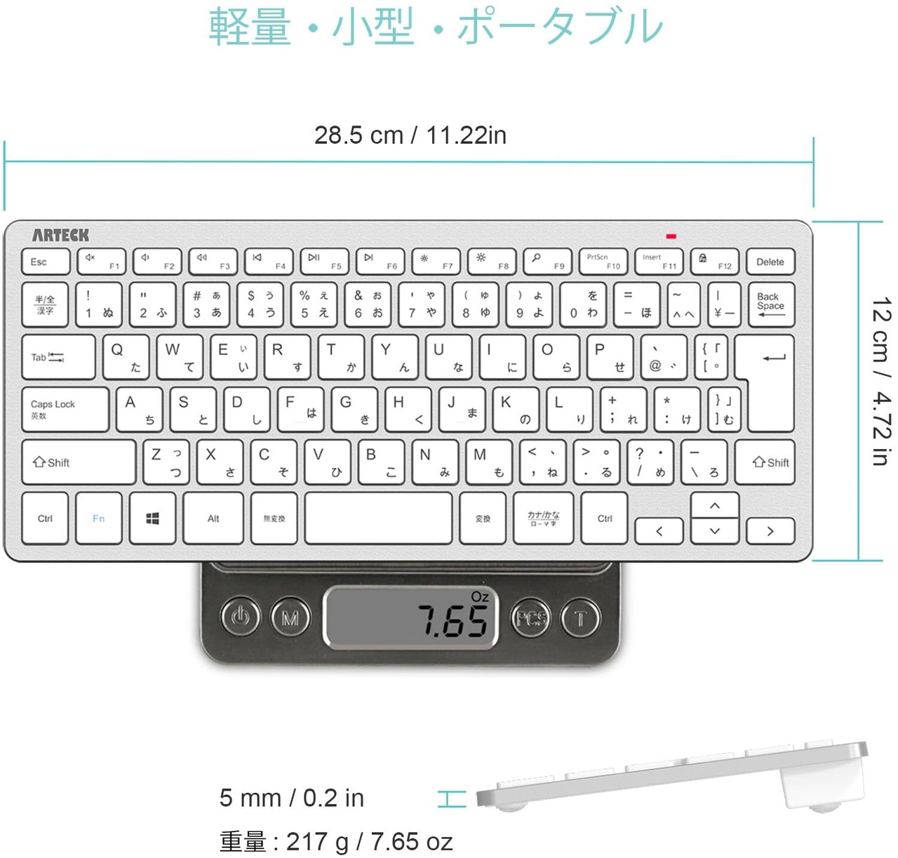 超薄型かつ軽量: コンパクトなサイズ (11.12 X 4.7 X 0.2インチ)かつ軽量なのに(7.65オンス) 、フルサイズキー、ショートカットが含まれ、快適なタイピングが可能です