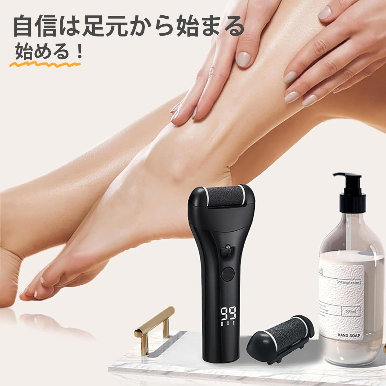 【完美足部ケアセット】サロンのような仕上がりを家で実現!高価なサロンの料金や待ち時間はもう必要ありません。このセットには、電動角質リムーバー1個と交換用ローラーヘッド3個、充電ケーブル1個、掃除用ブラシ1個が含まれています。