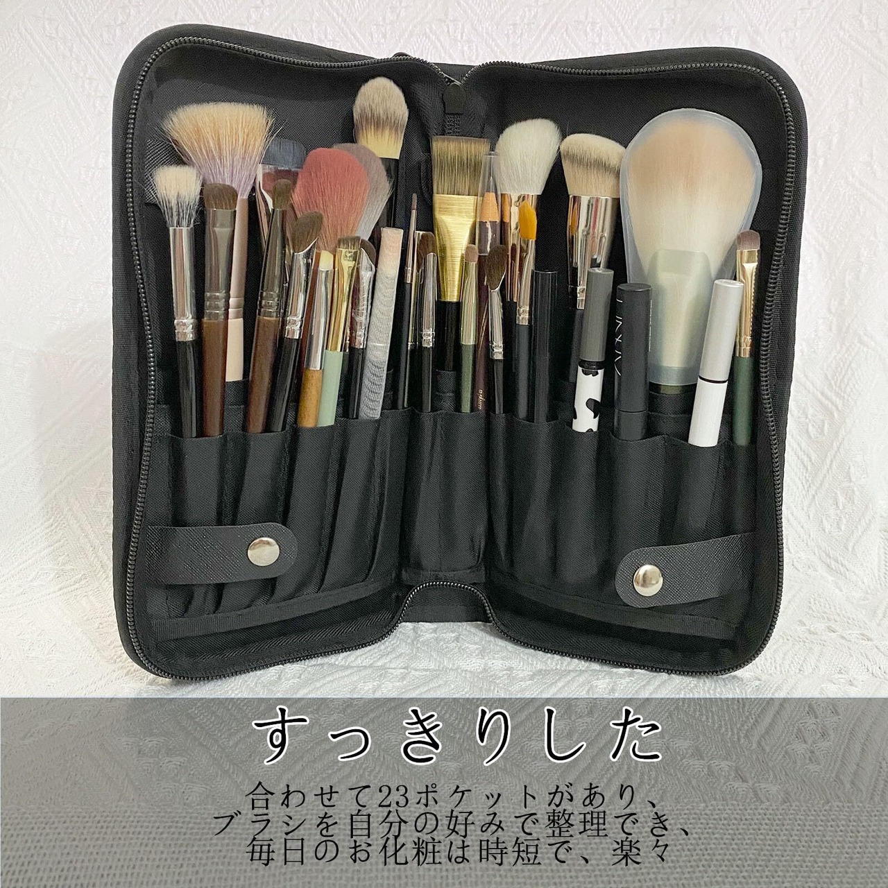 【超大容量】このメイクブラシケースは23 ポケットがあります、各ポケットに1本の大きめパウダーブラシを収め、2-3本の小さめアイシャドウブラシを収めます。