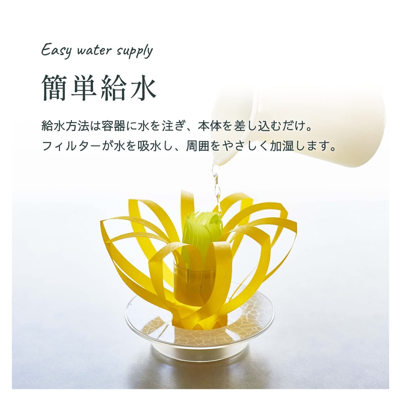 おくだけエコ加湿 ミクニ 加湿器 ミスティフラワー イエロー U706-01 ペーパー加湿 電気不要 節電 インテリア 抗菌 防カビ 折り紙 自然気化 日本製 乾燥 手入れ簡単 コードレス 卓上 小型 おしゃれ 花粉 冷房 気化熱 夏風邪 春夏秋冬 アレルギー 一年中