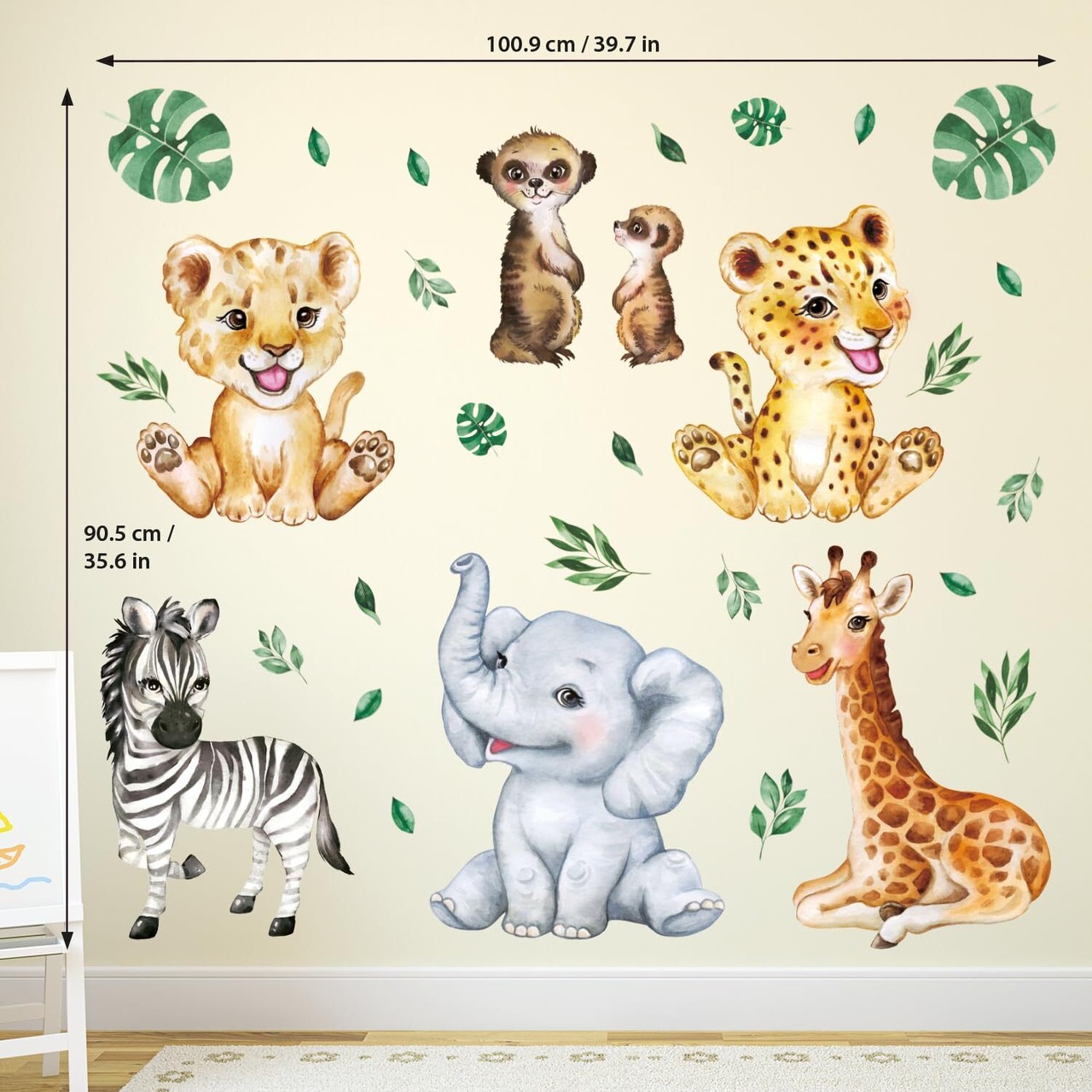 DECOWALL DS12-8067 赤ちゃんのジャングルの動物 ウォール ステッカー デコ 幼稚園 保育園 子供部屋 DIY 壁転写 シール ウォールアート シール こども バスルーム デコレーション ビニール 寝室用 ティーン キッズ ウォールペーパー 壁紙 家具 部屋用 処理 乳児 子 装飾的 リビング キッチン 贈り物 プレゼント 北欧