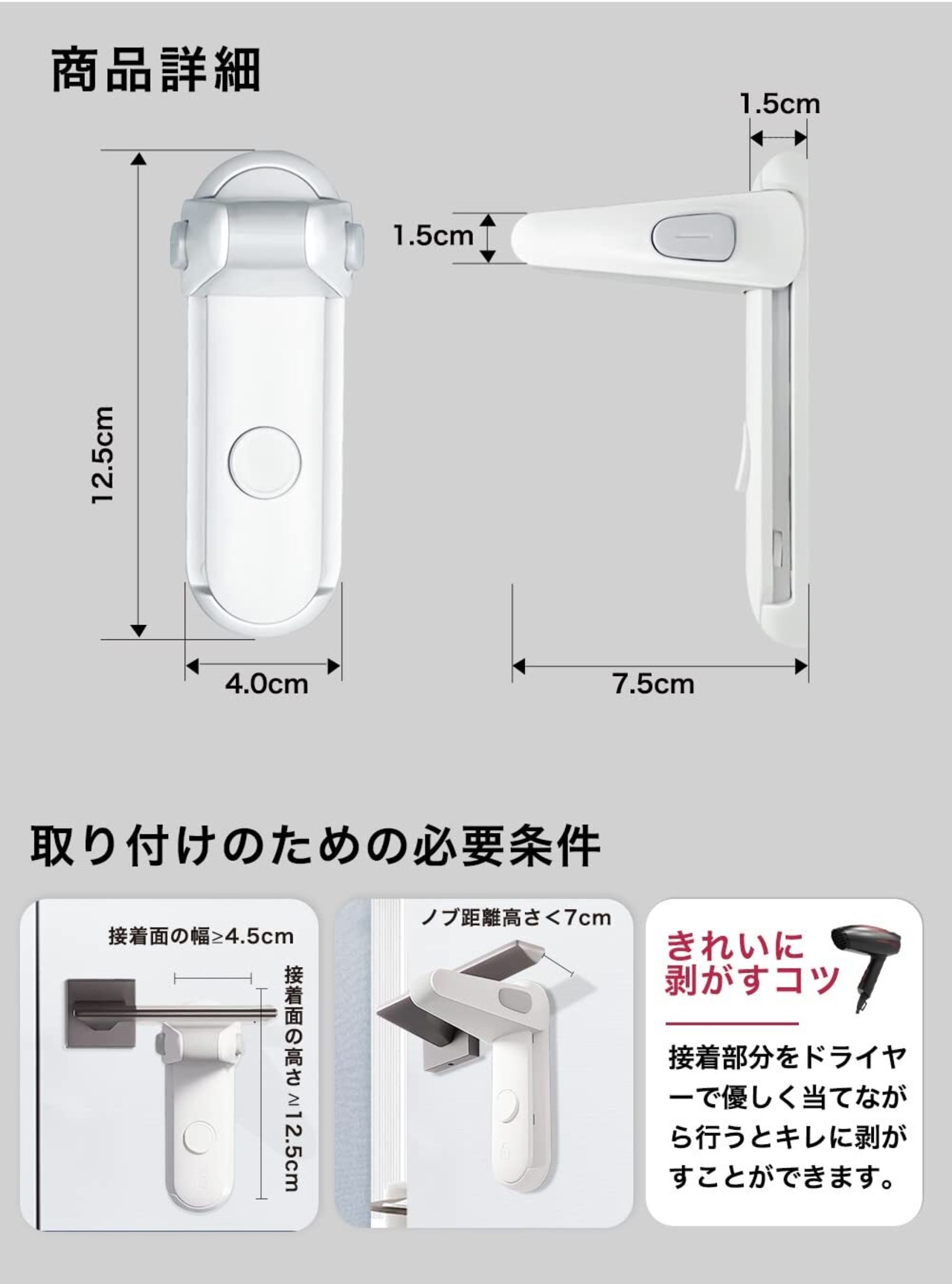 【品質へのこだわり】チャイルドロック は赤ちゃんにやさしい安全なABS樹脂を使用。3M強力粘着テープでしっかり固定させます。