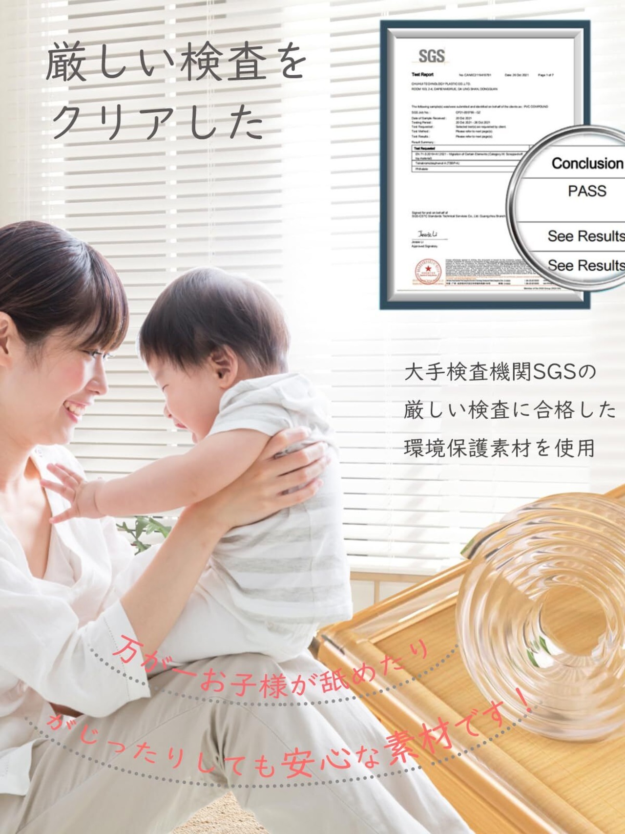 無毒安全エコ素材でクッション性がある柔らかい素材を採用し、子供安全、安心なお住まいの為アイテムです。お母さんたち安心にご利用させるコーナーパッドです。透明なデザインで室内のインテリアとびったり!目立ちにくく、お子様の目に止まりにくいので剥がし防止になります。