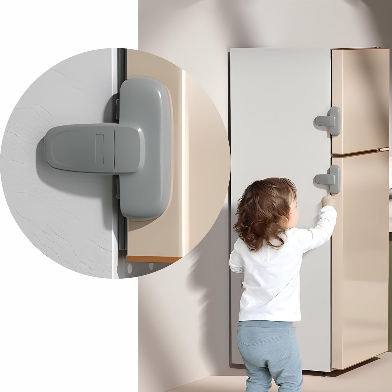 ️【冷蔵庫ロック,幼児のイタズラ対策に(不注意して,物が溶けて)】行き場のない赤ちゃんの好奇心の中には、どれだけの安全上のリスクが潜んでいるのでしょうか?なぜこの冷蔵庫ロック(チャイルドロック)が必要なのか?赤ちゃんが冷蔵庫のドアを勝手に開けて中身を床にこぼしてしまった、冷凍庫の物が溶けて水があふれてしまった、そんなお悩みはありませんか?この冷蔵庫ロック安全ロックはしっかり止めることができ、有効な対策になります。