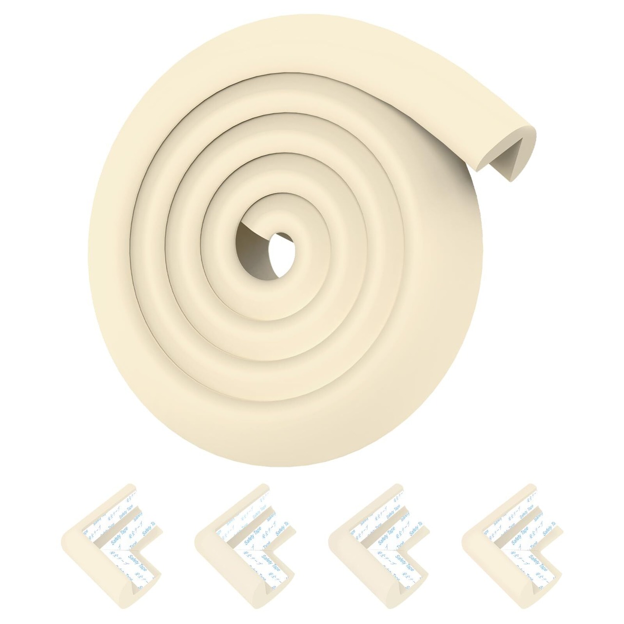 COUMENO スポンジ衝撃吸収テープ2m + コーナープロテクター4枚 強力両面テープ付き ベビー・幼稚園・家具のコーナー保護に最適 オフホワイト