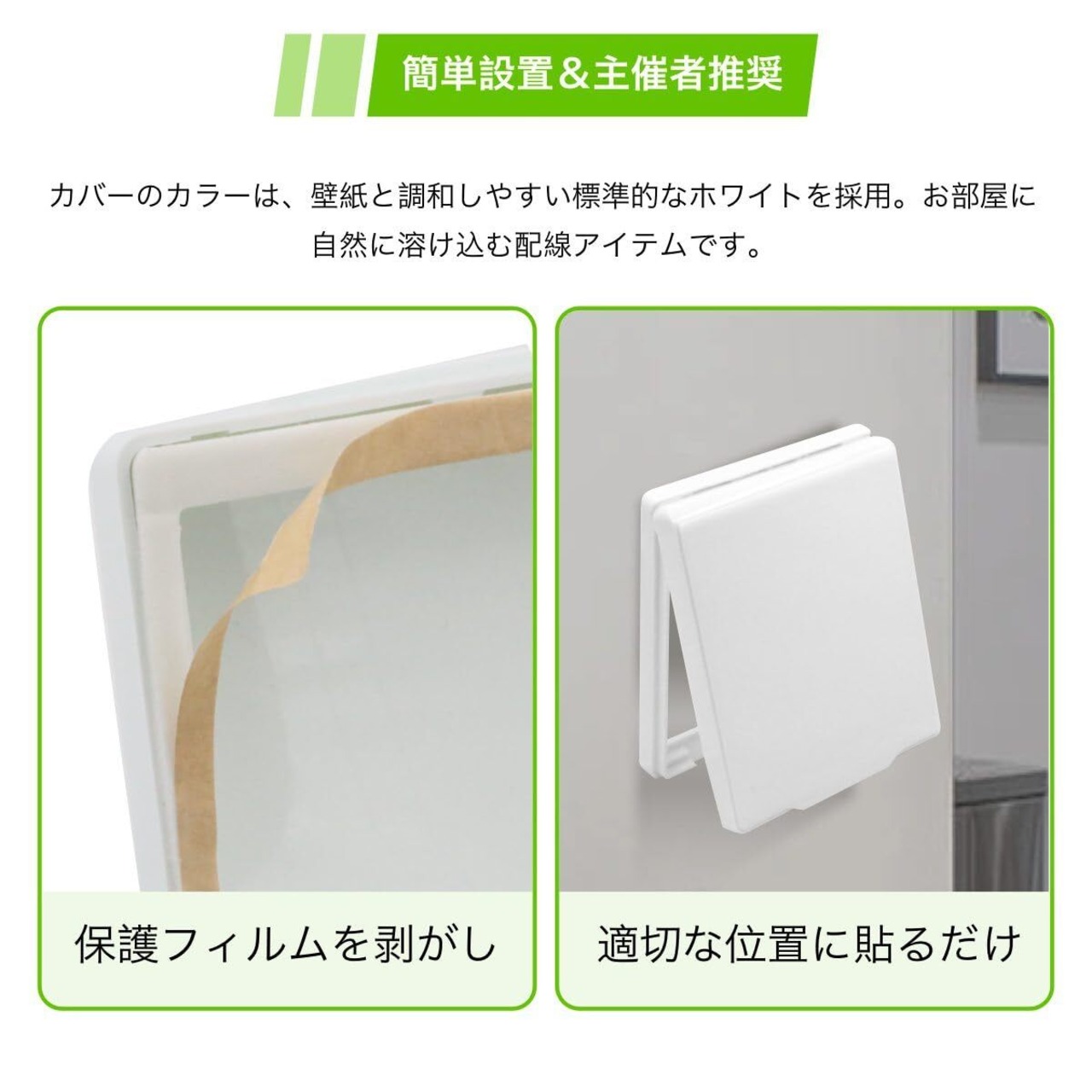 [簡単取り付け] 自己粘着式で穴あけ不要!誰でも簡単に取り付け可能
