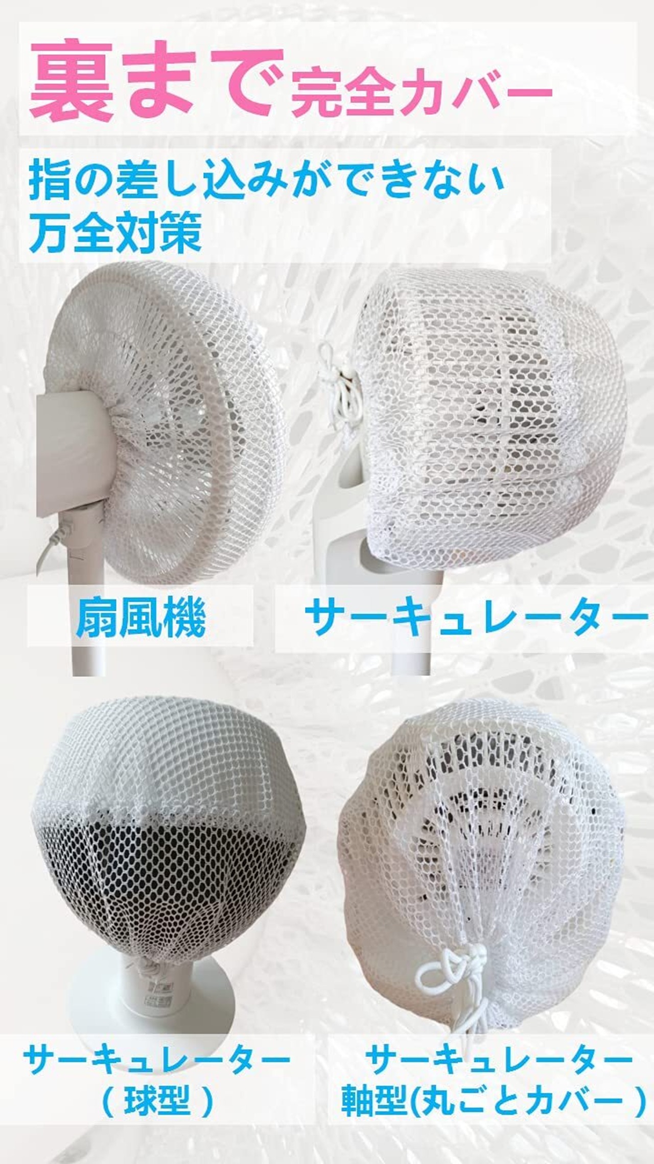 SYOSINN 扇風機カバー 安全カバー サーキュレーターカバー 子供 裏までかかる 子供指はさみ防止 赤ちゃん 紐で固定するタイプ ホワイト 無地 カバー正面直径37cm+背面半径17cm 家庭用 1枚入り