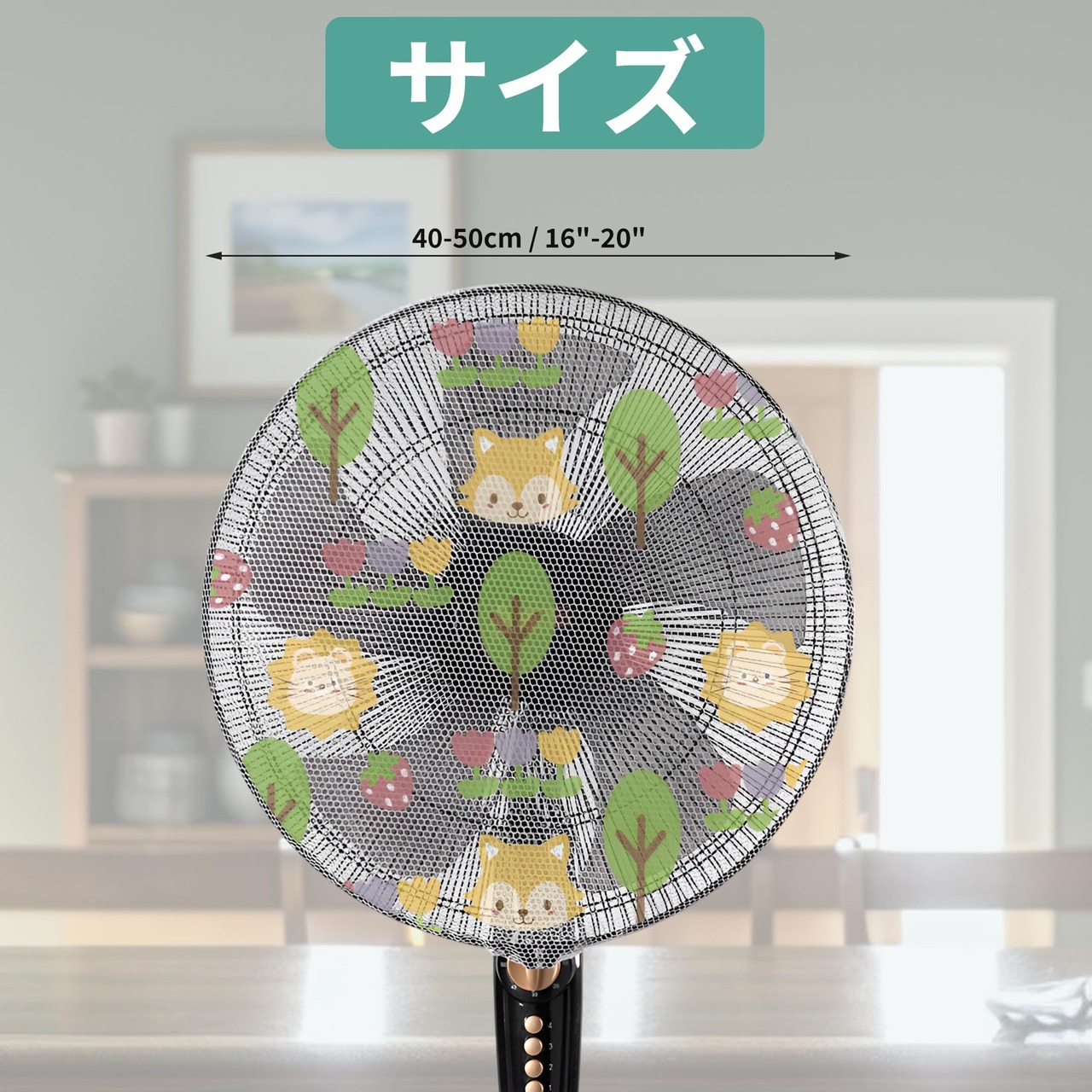 CAPASTEC ファンカバー 扇風機 あんぜん 防水防塵 洗濯可能 裏までかかる 指はさみ防止 フロアファン用 収納 保存袋 弾性ある おしゃれ 省スペース 家庭用 業務用 頑丈 梅雨対策 汎用設計 緑イエロー 動物たち
