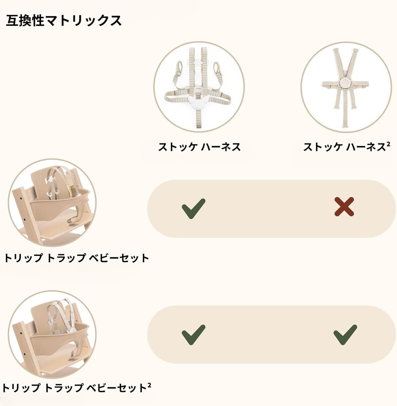 ストッケ ハーネス² は、2024年4月発売のトリップ トラップ ベビーセット² にのみ対応しています